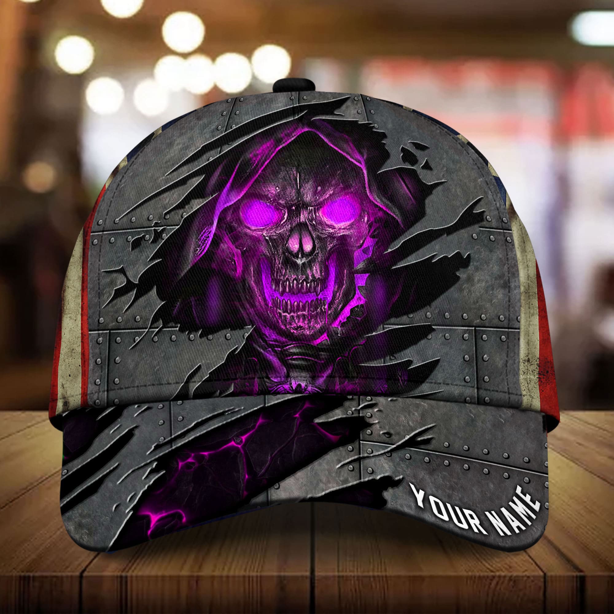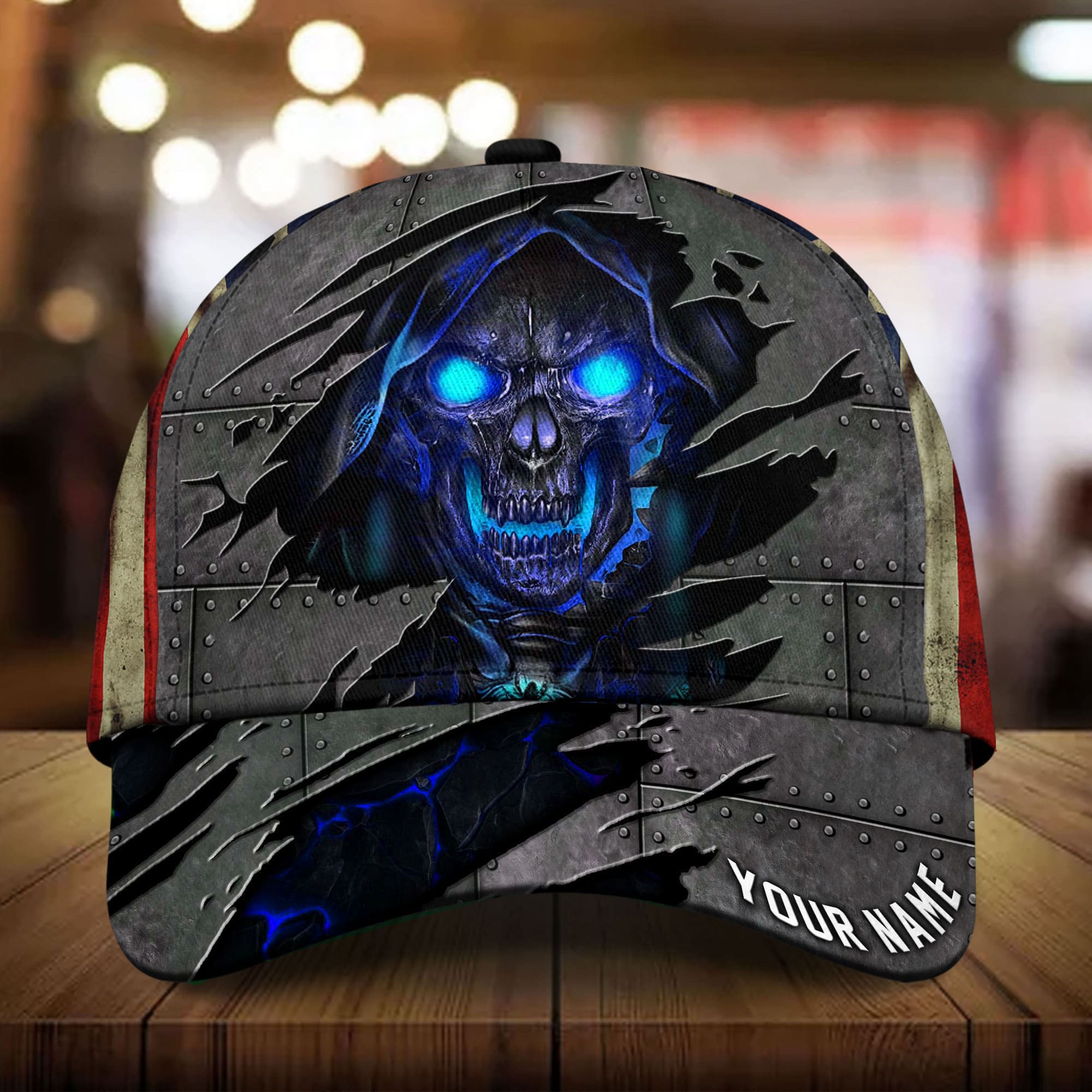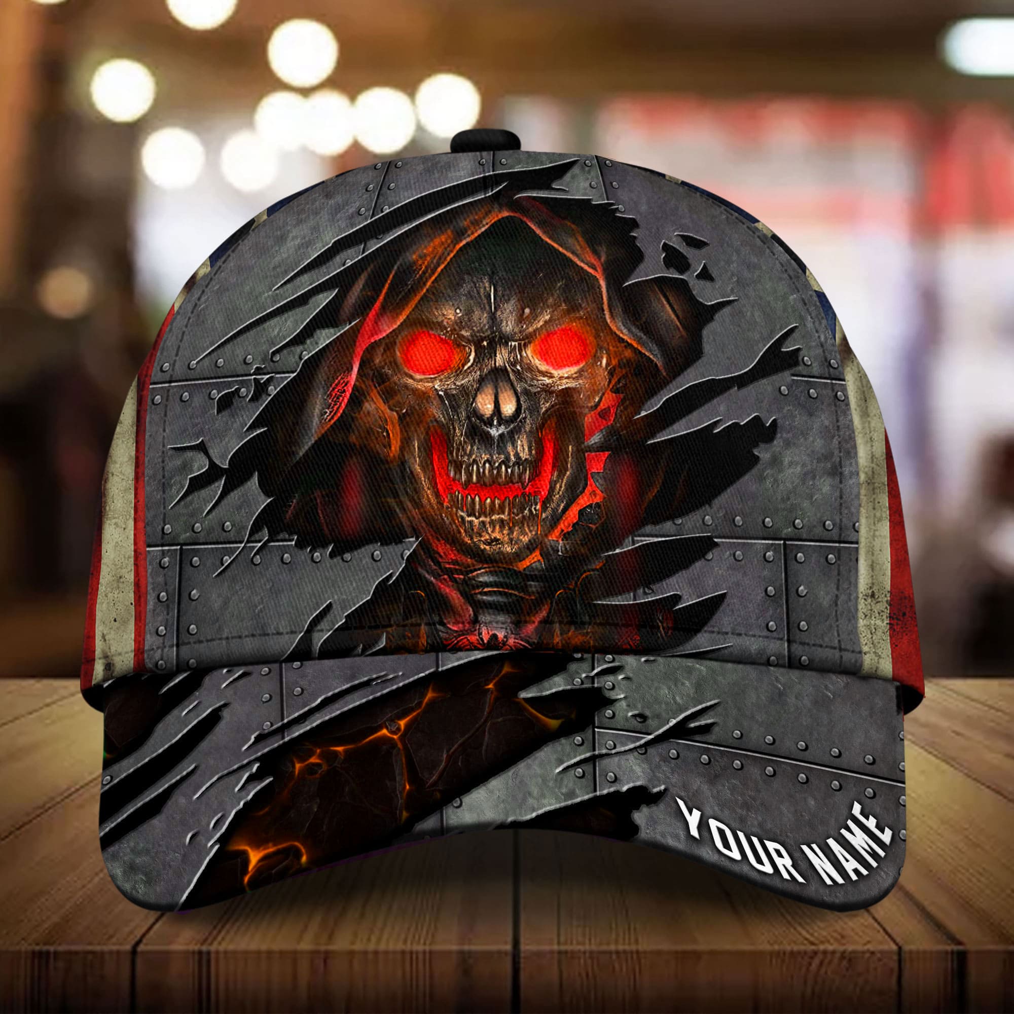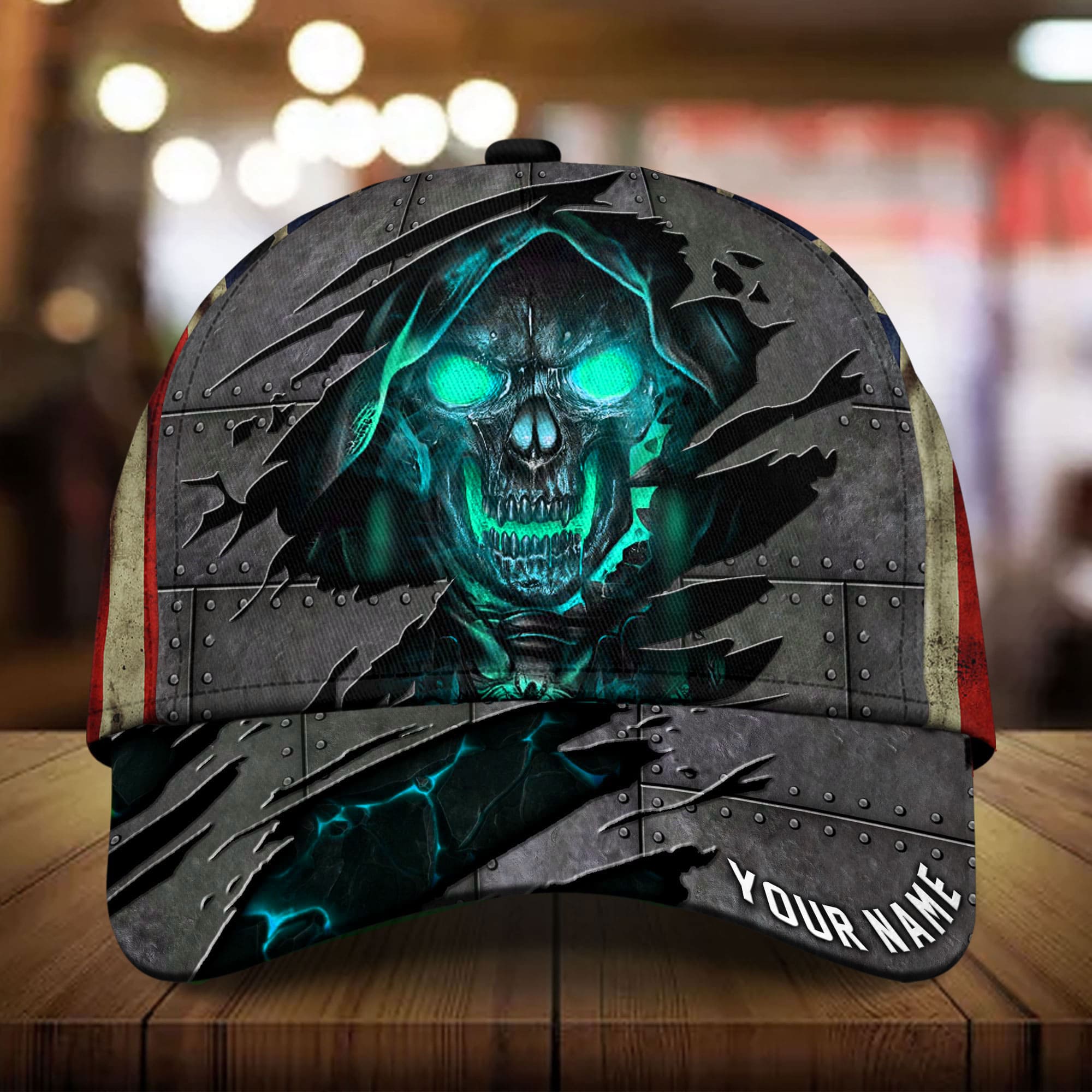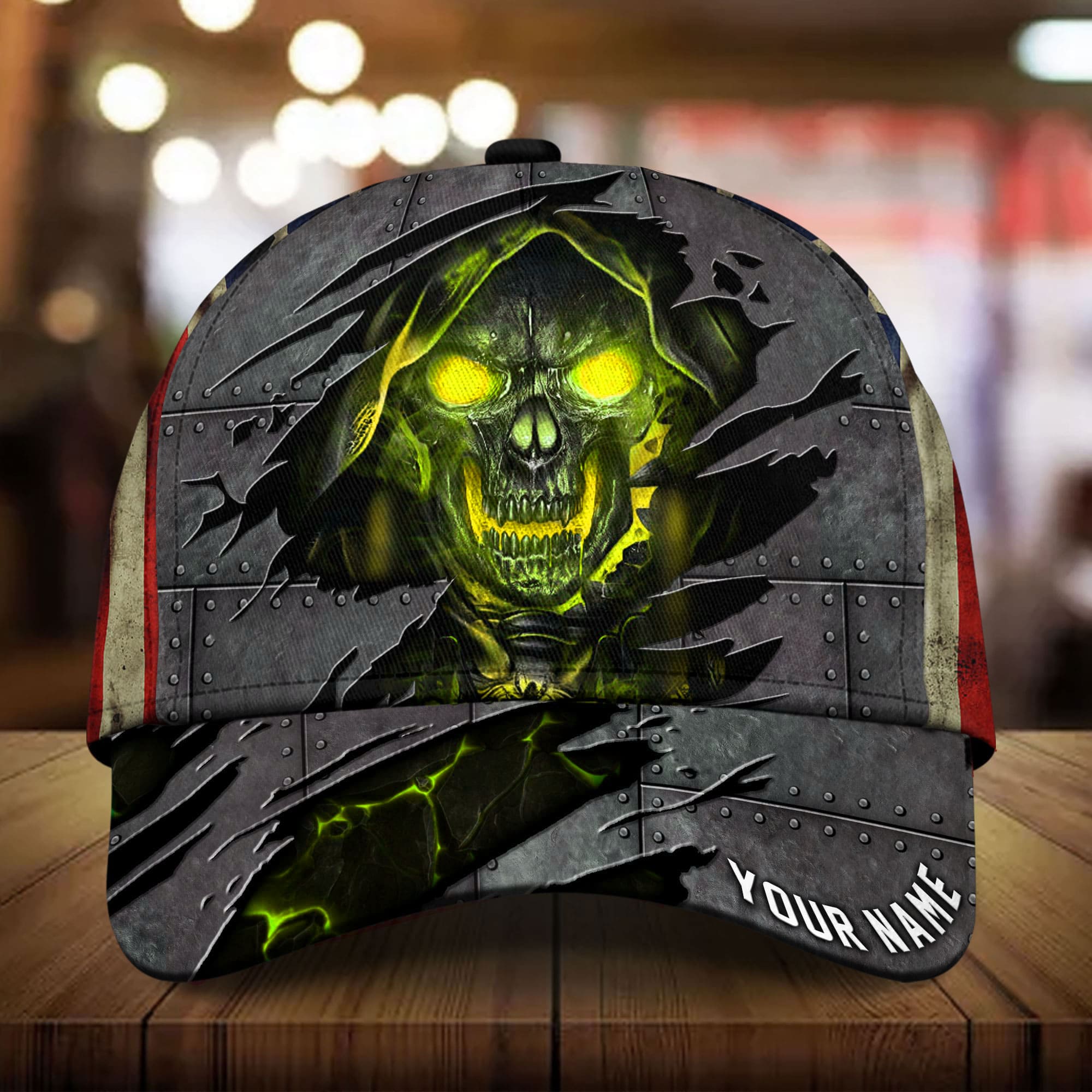 Premium Metal Cracked Skull 3D Hat Printed Green Personalized