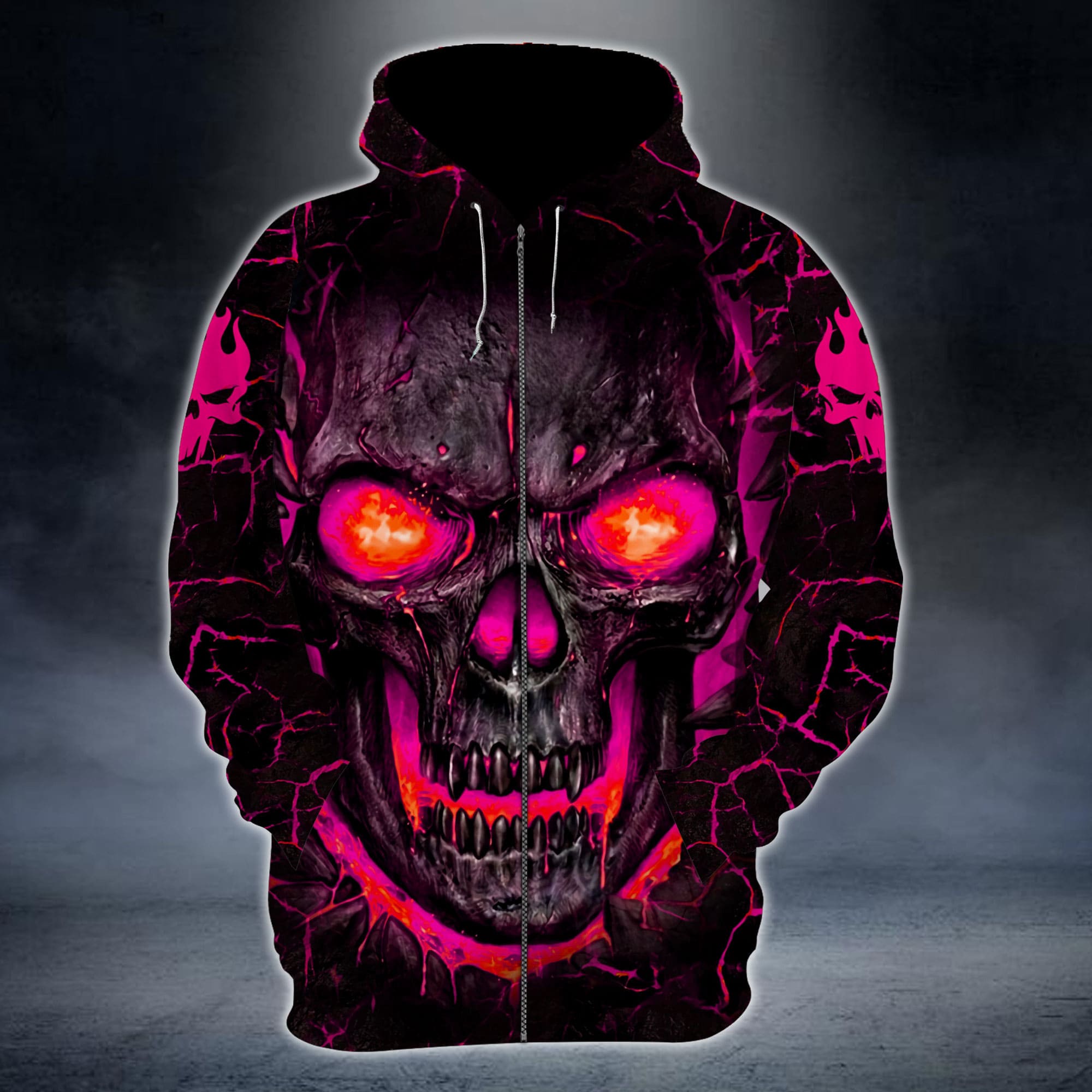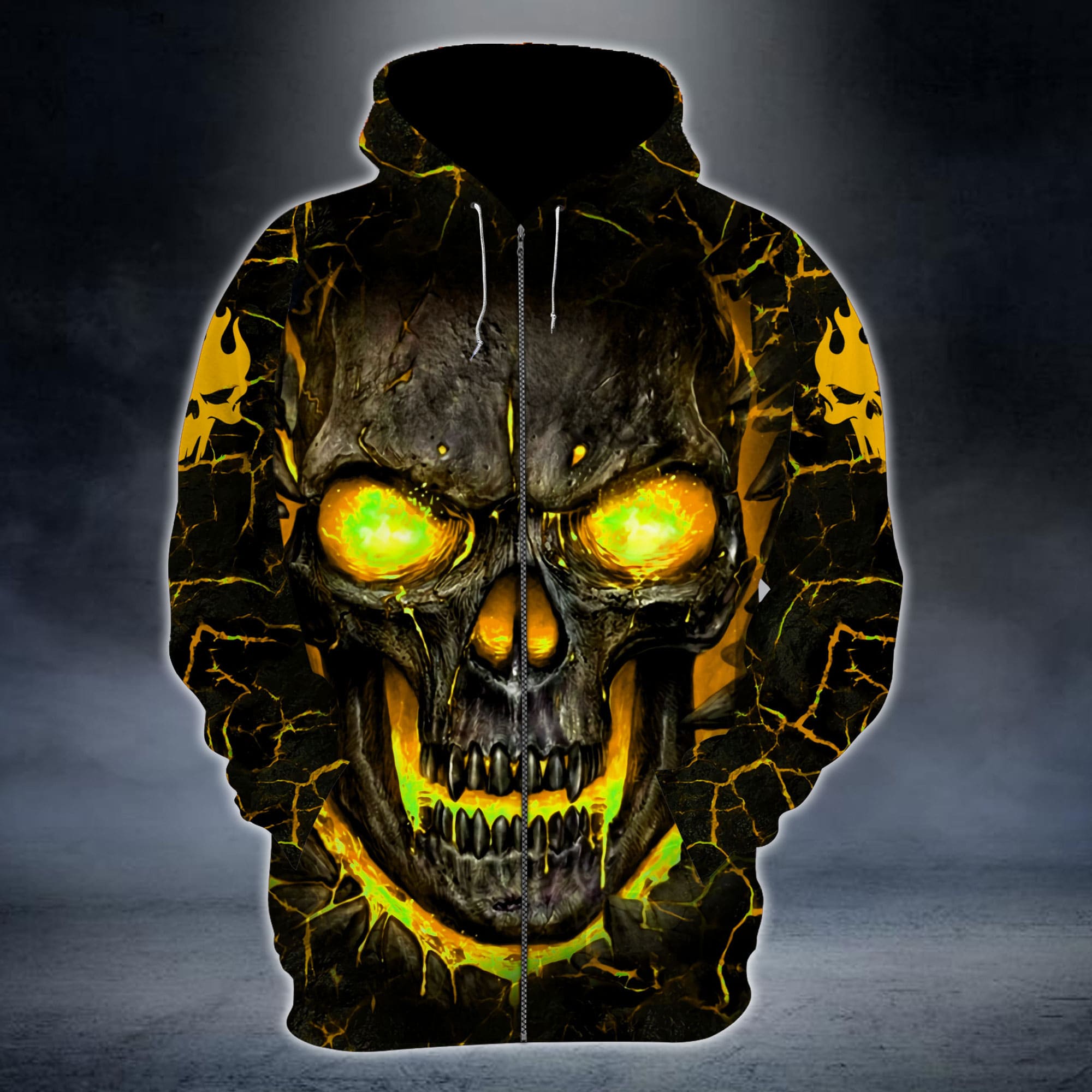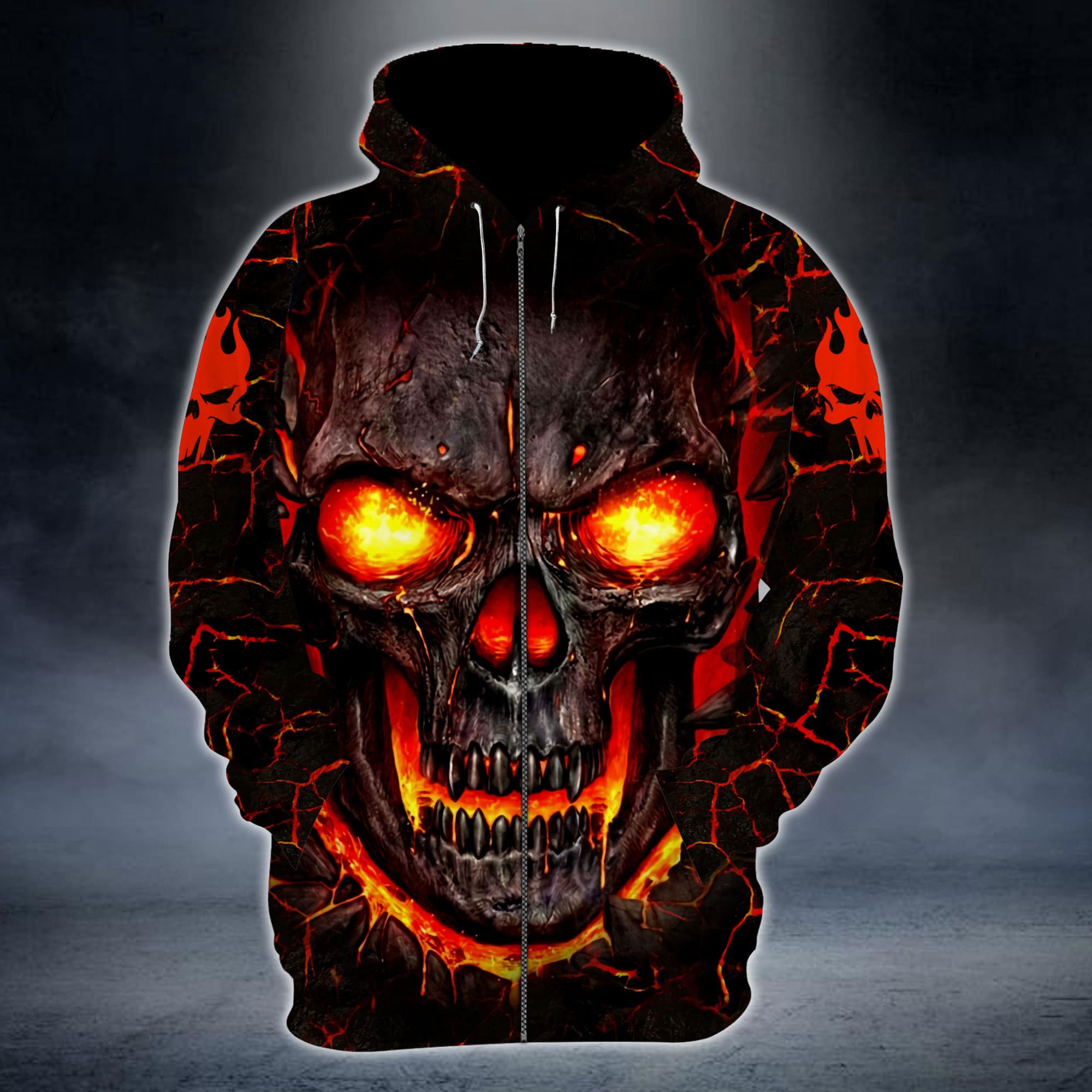 Premium Unique Lava Skull Zip Hoodies 3D Multicolor