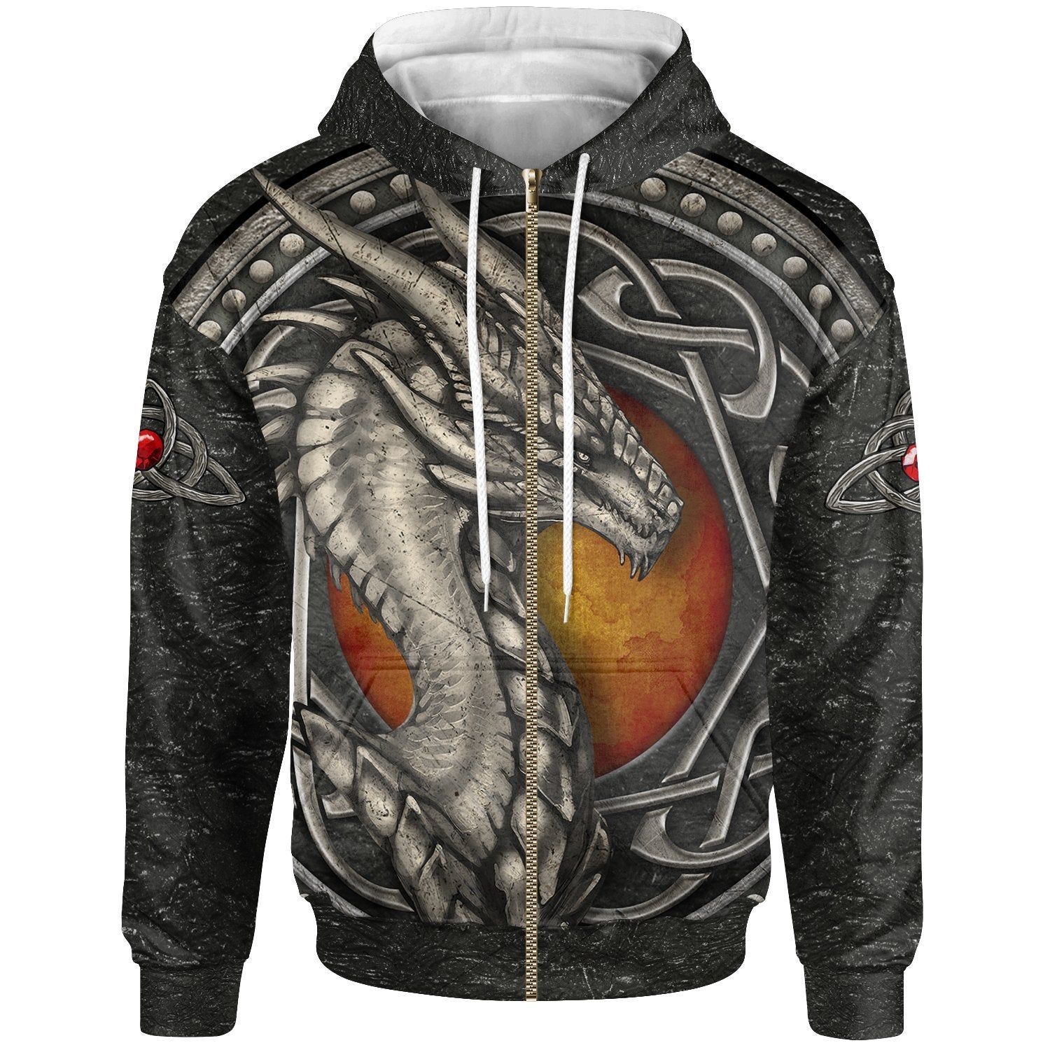 Celtic Dragon With Celtic Knot Zip - Up Hoodie