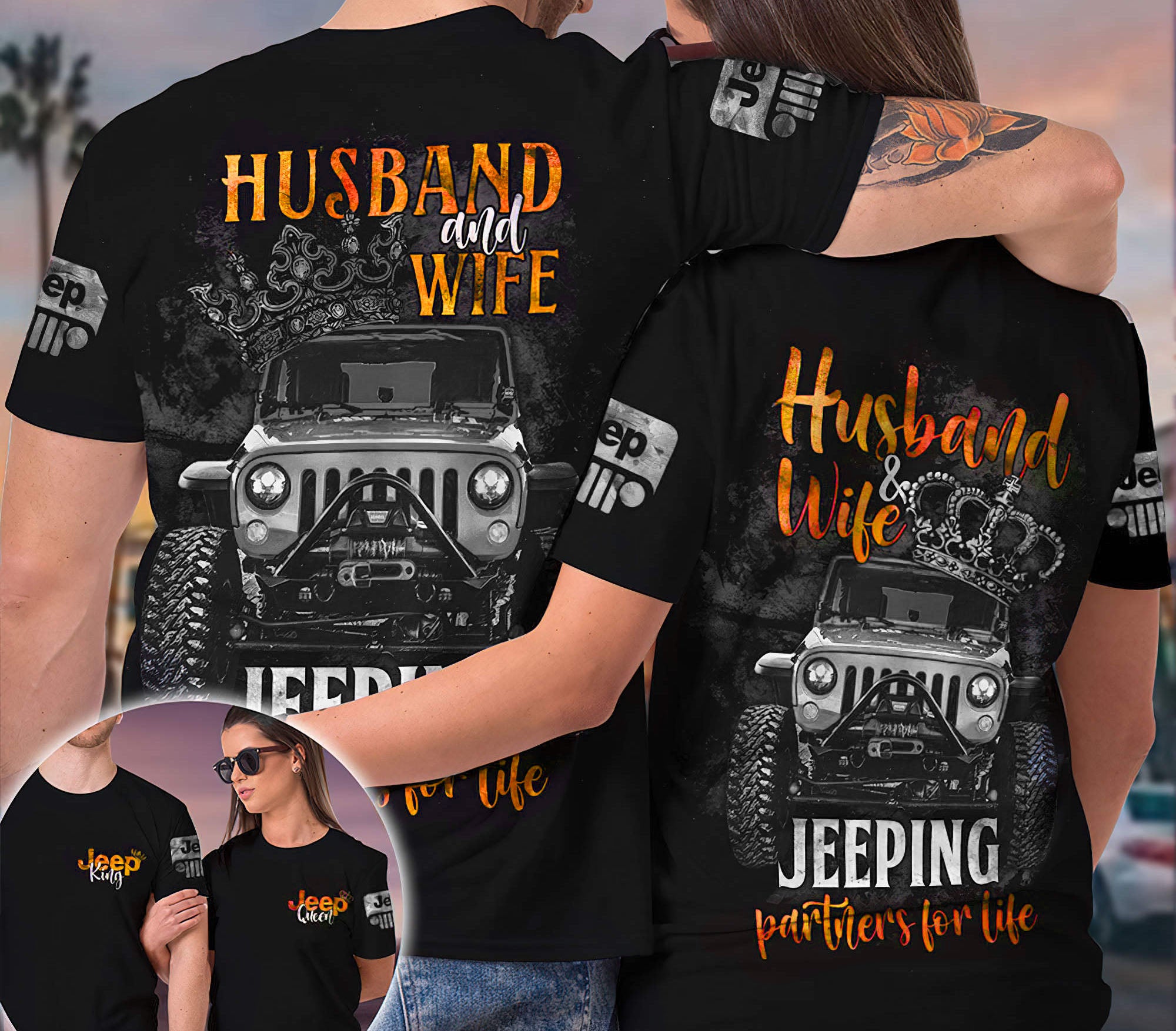 Black Jeep Husband And Wife Couple T shirt RLT9