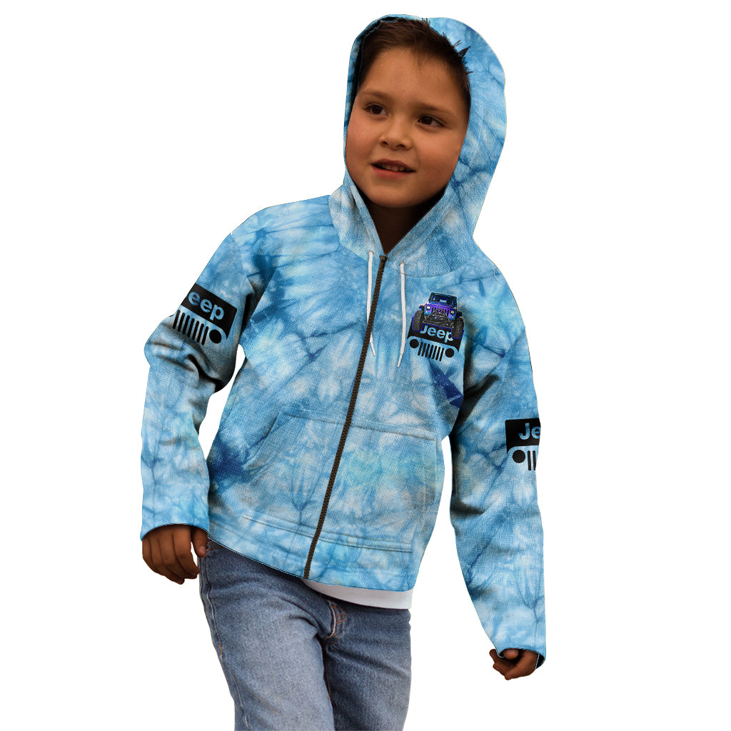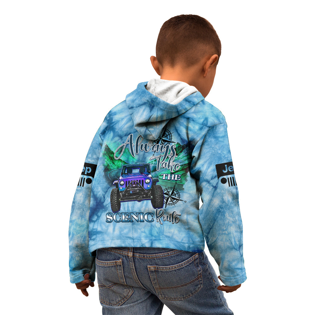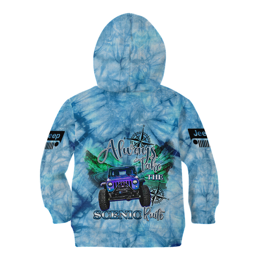 Blue Jeep Tie Dye Kid Hoodie Always Take The Scenic Route TS06