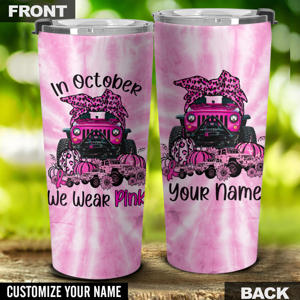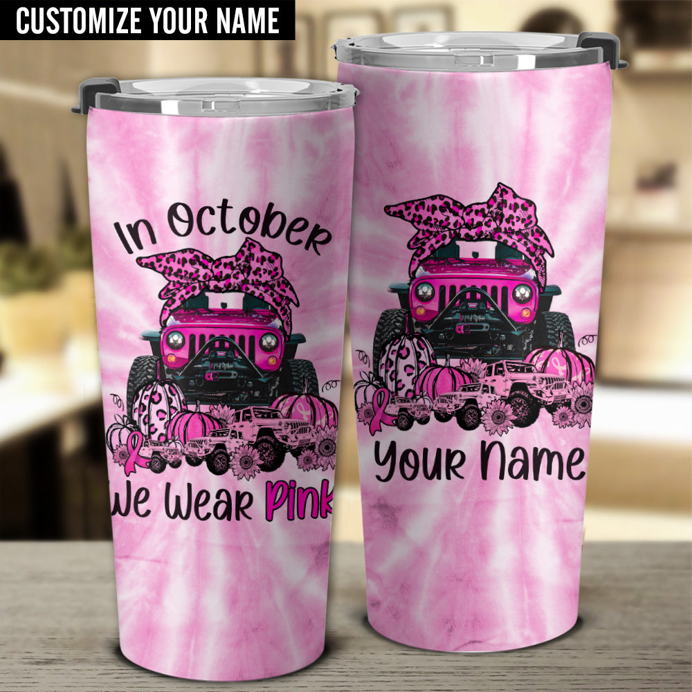 Breast Cancer Personalized In October We Wear Pink Jeep Tie Dye Tumbler LT11
