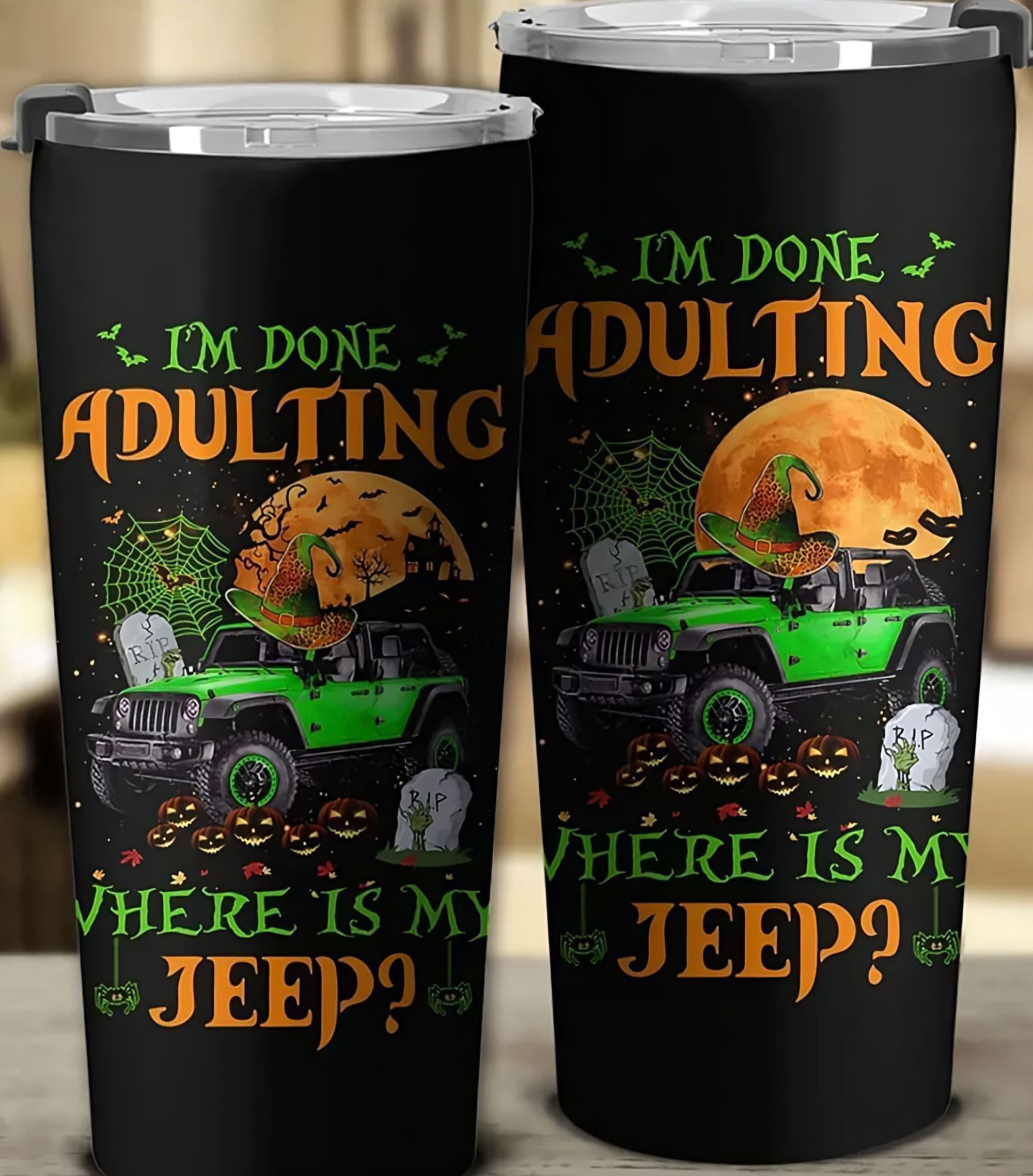 I'm Done Adulting Jeep Halloween Tumbler