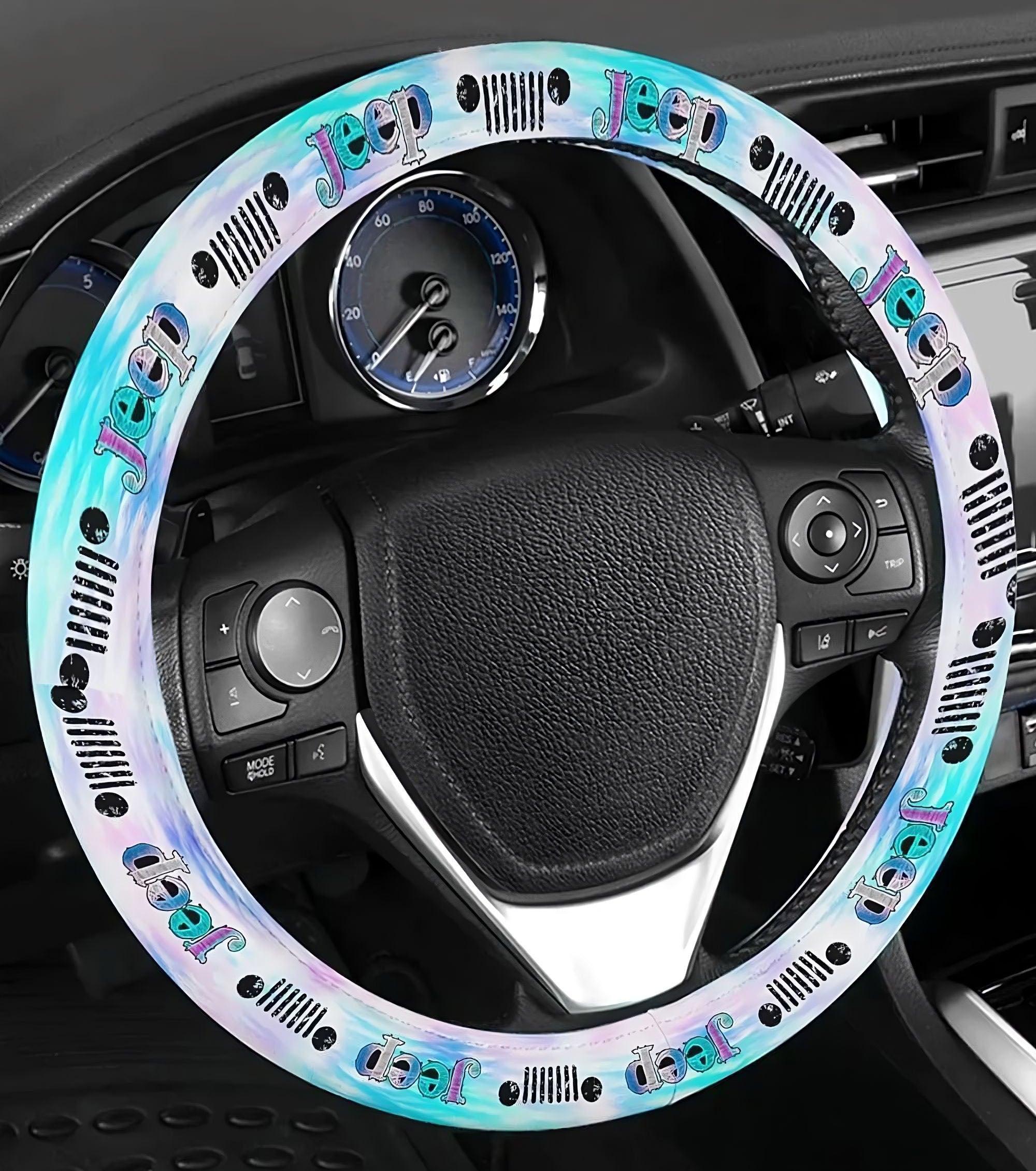 Jeep Sketch Scenic Route Tie Dye Automotive Steering Wheels Cover