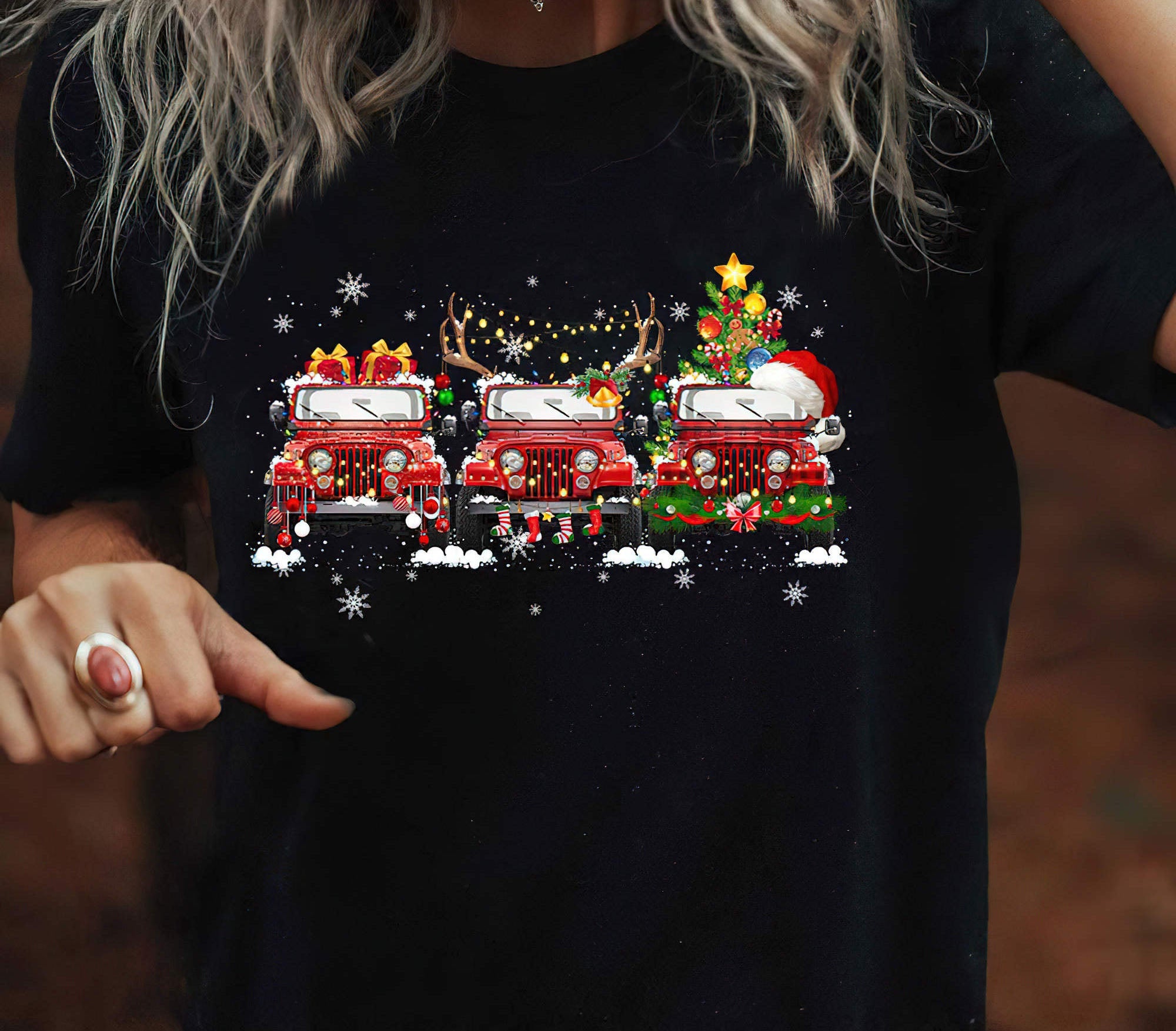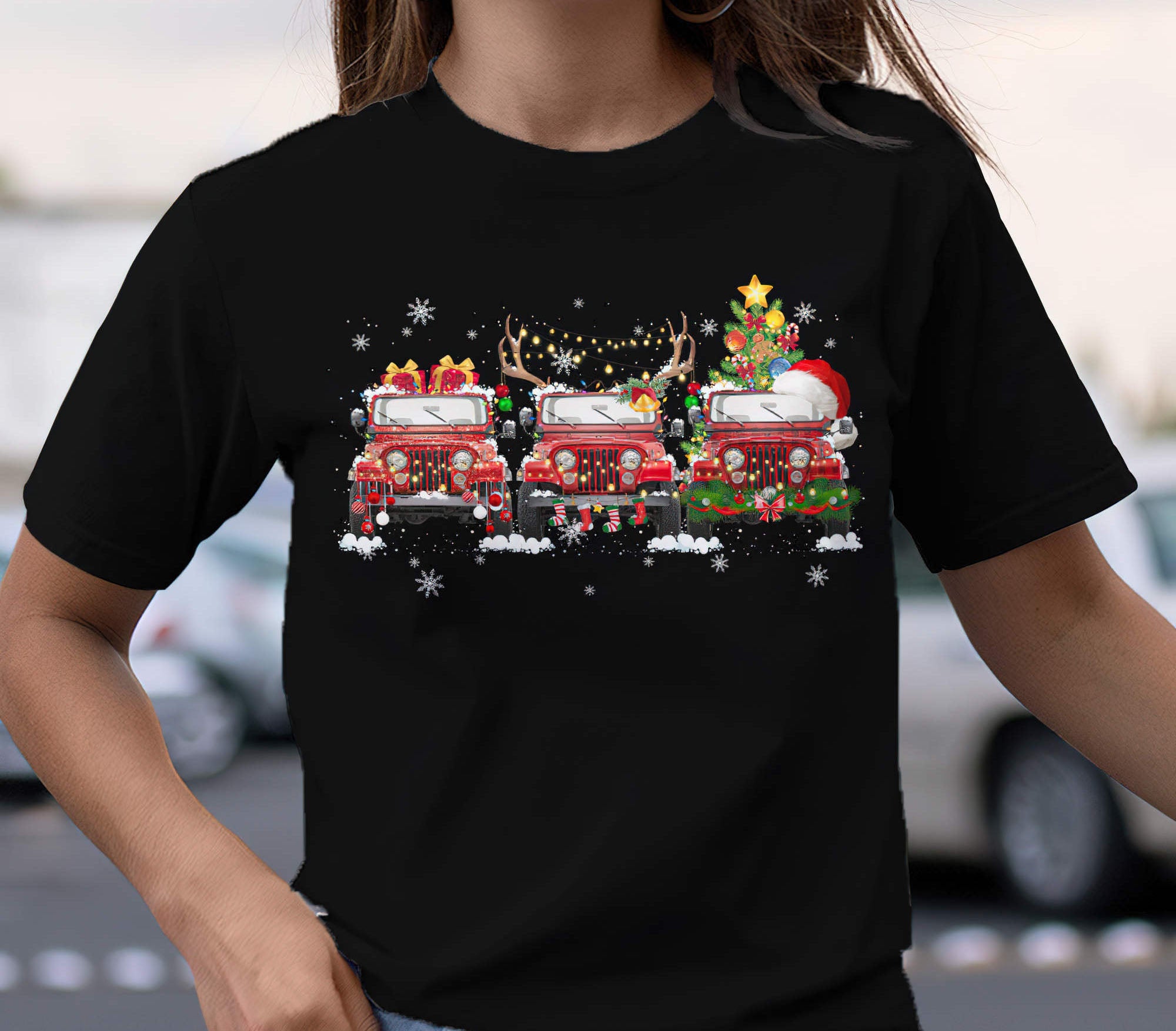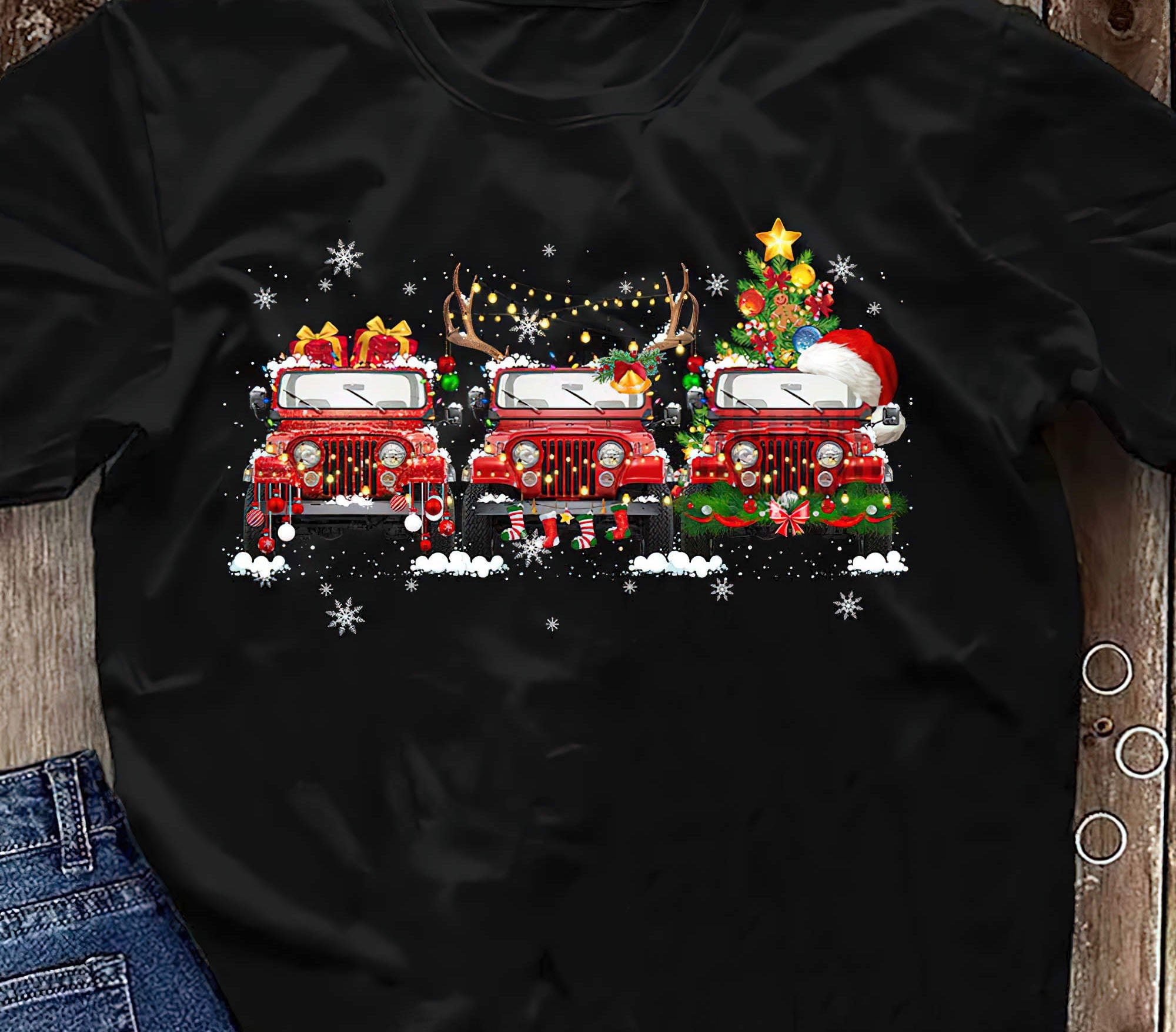 3 Jeeps Christmas 1 Sided T shirt