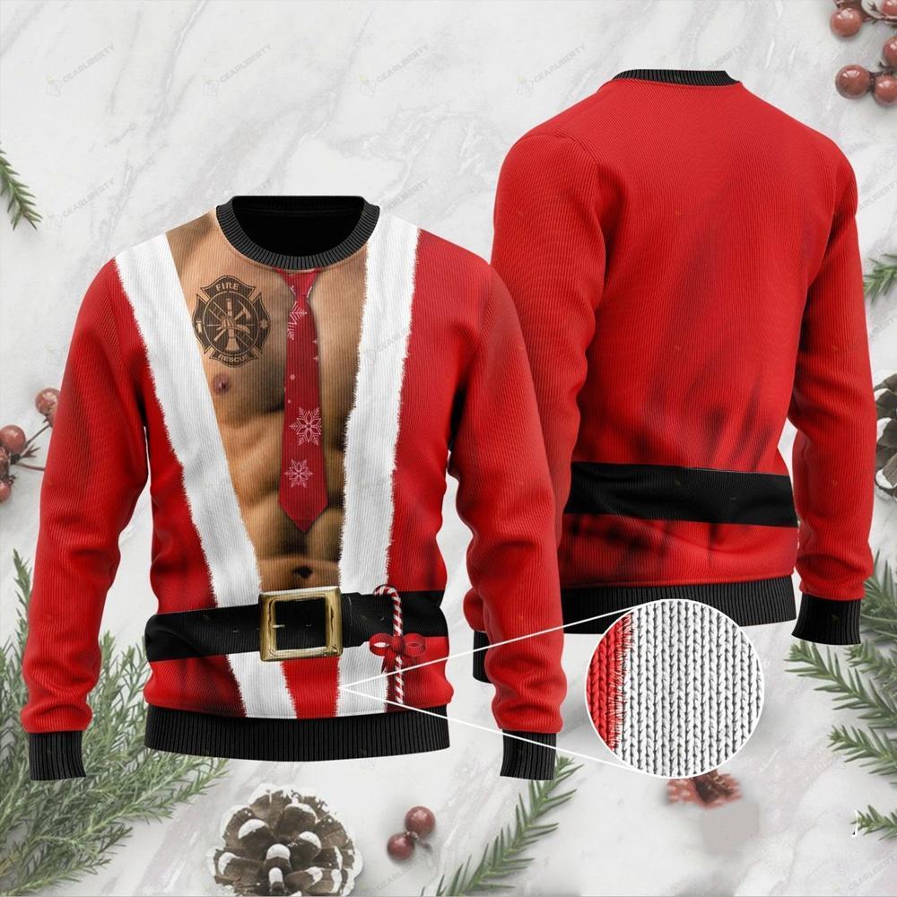 6 Packs Body With Firefighter Tattoo For Firefighters Ugly Christmas Sweater LT11