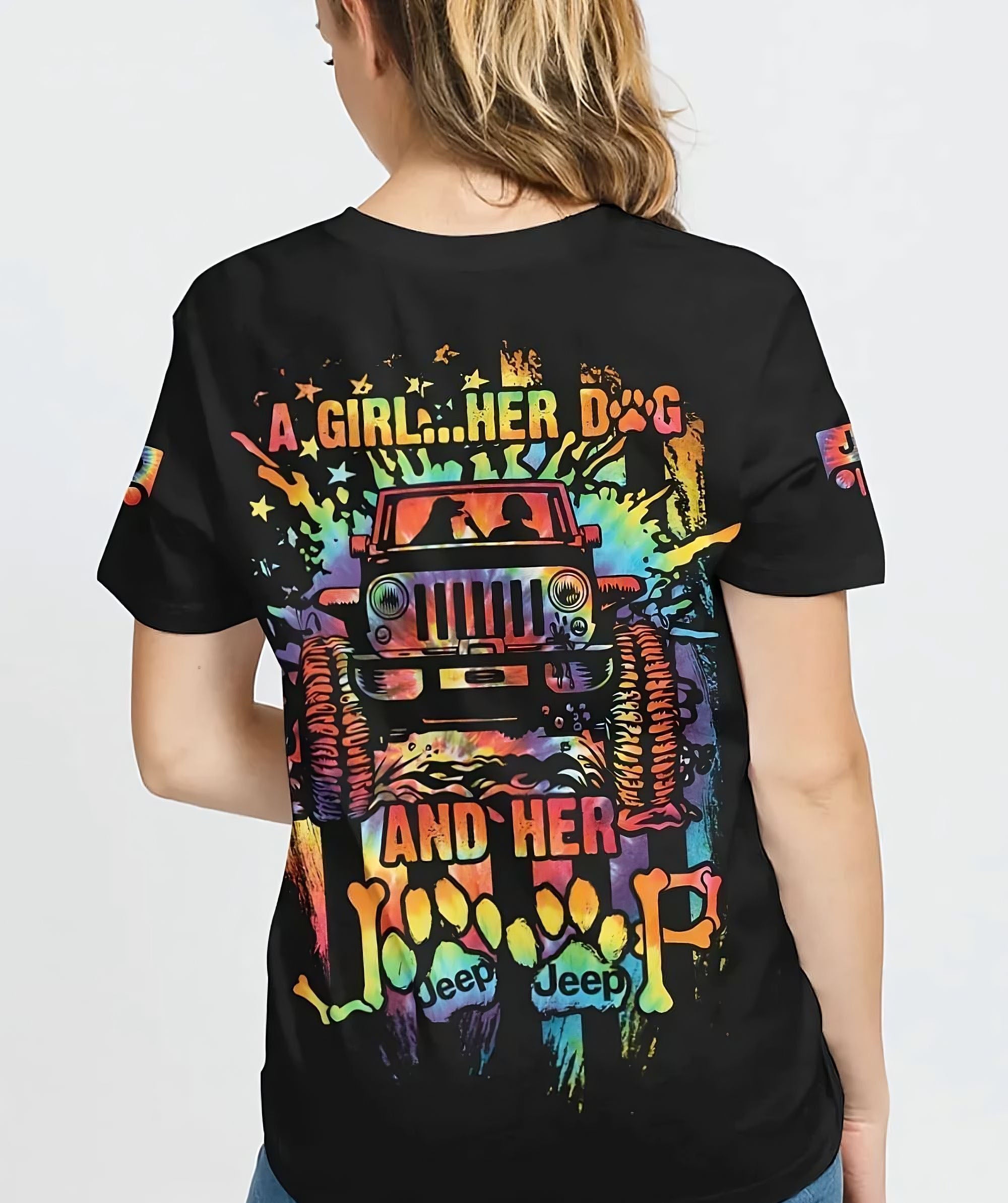 A Girl Her Dog And Her Jeep All Over Print 1 T-shirt