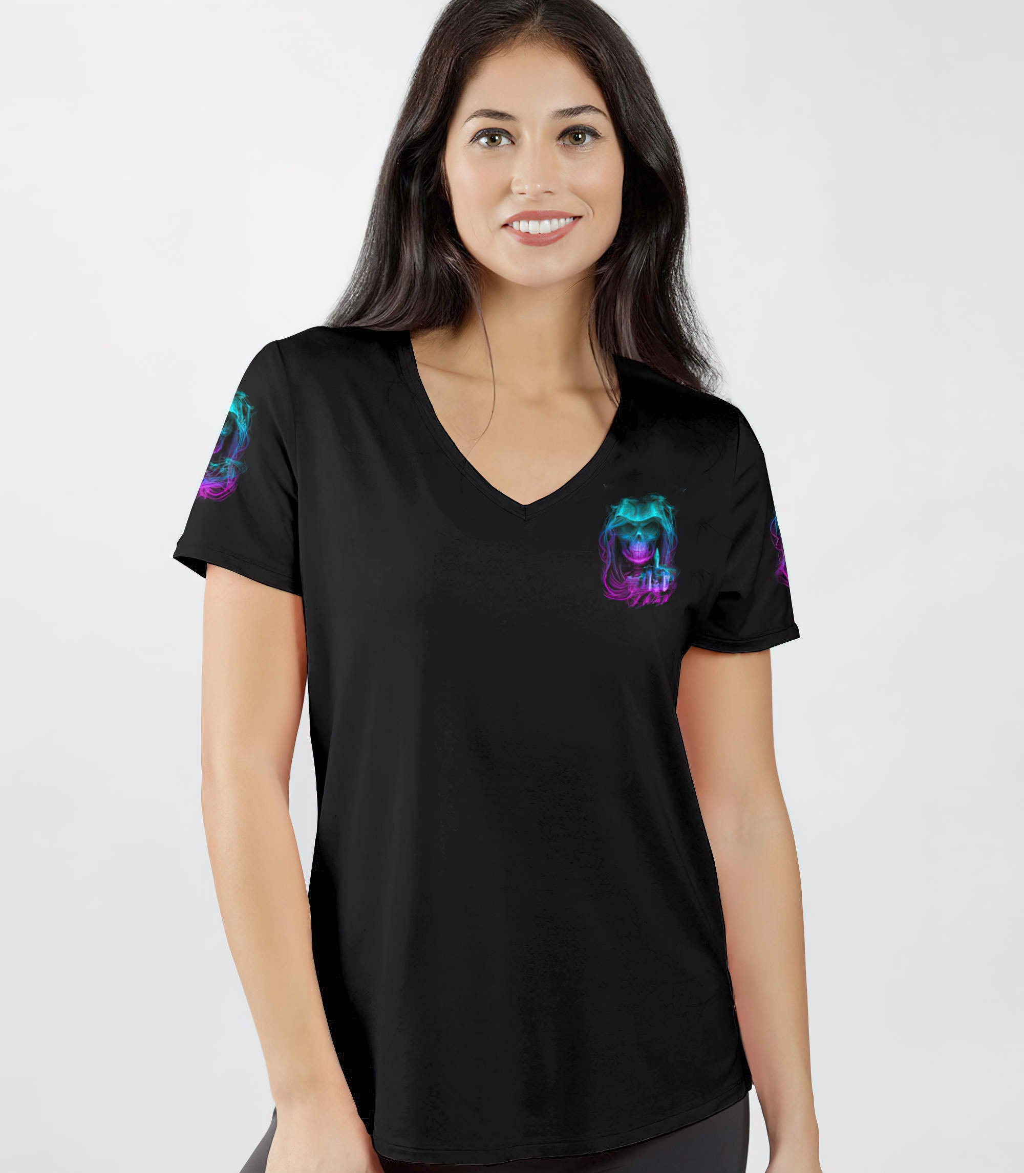 Always A Strong Woman Reaper All Over Print Women V-Neck T Shirt