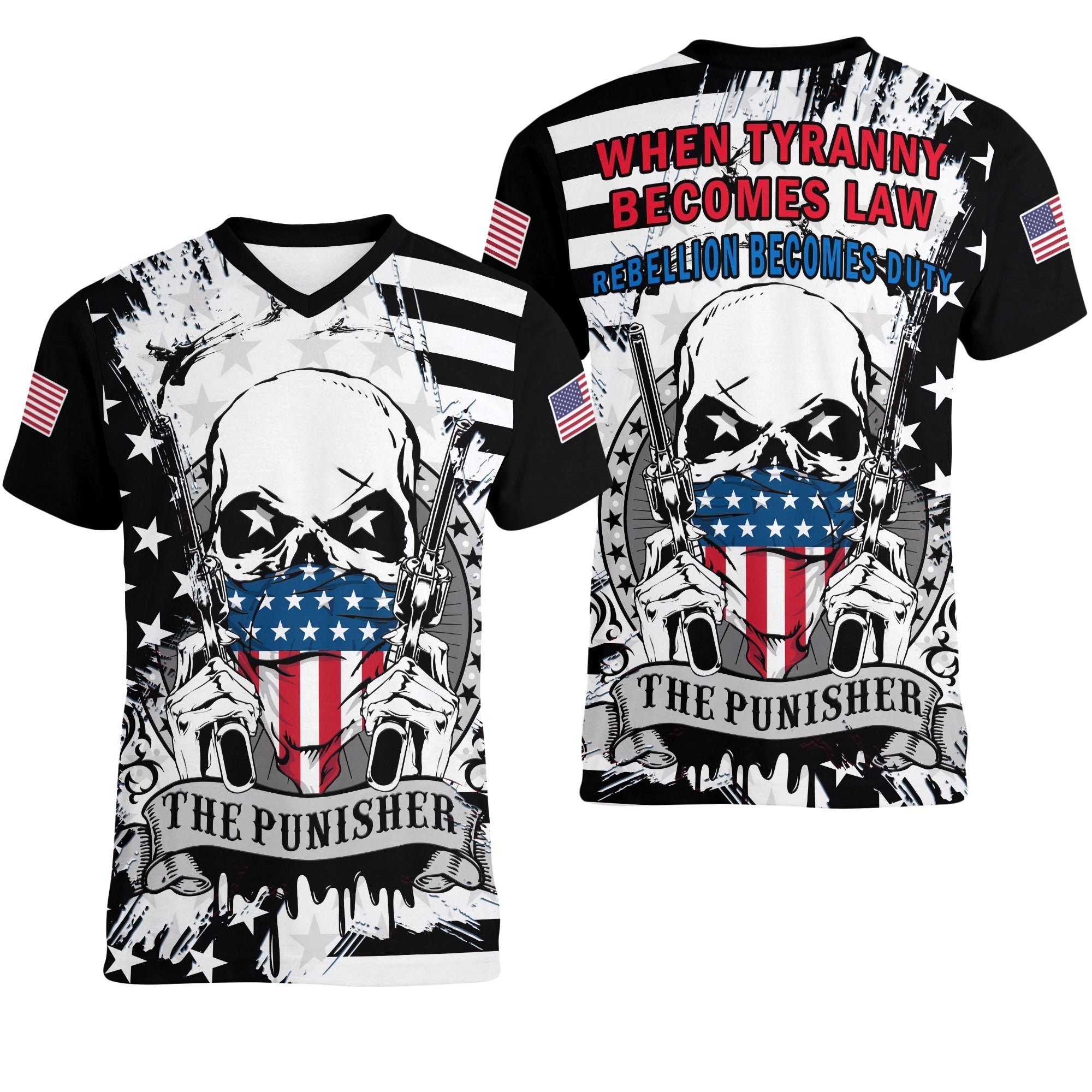 America V-Neck T Shirt American Flag Punisher Skull Grunge Style LT14