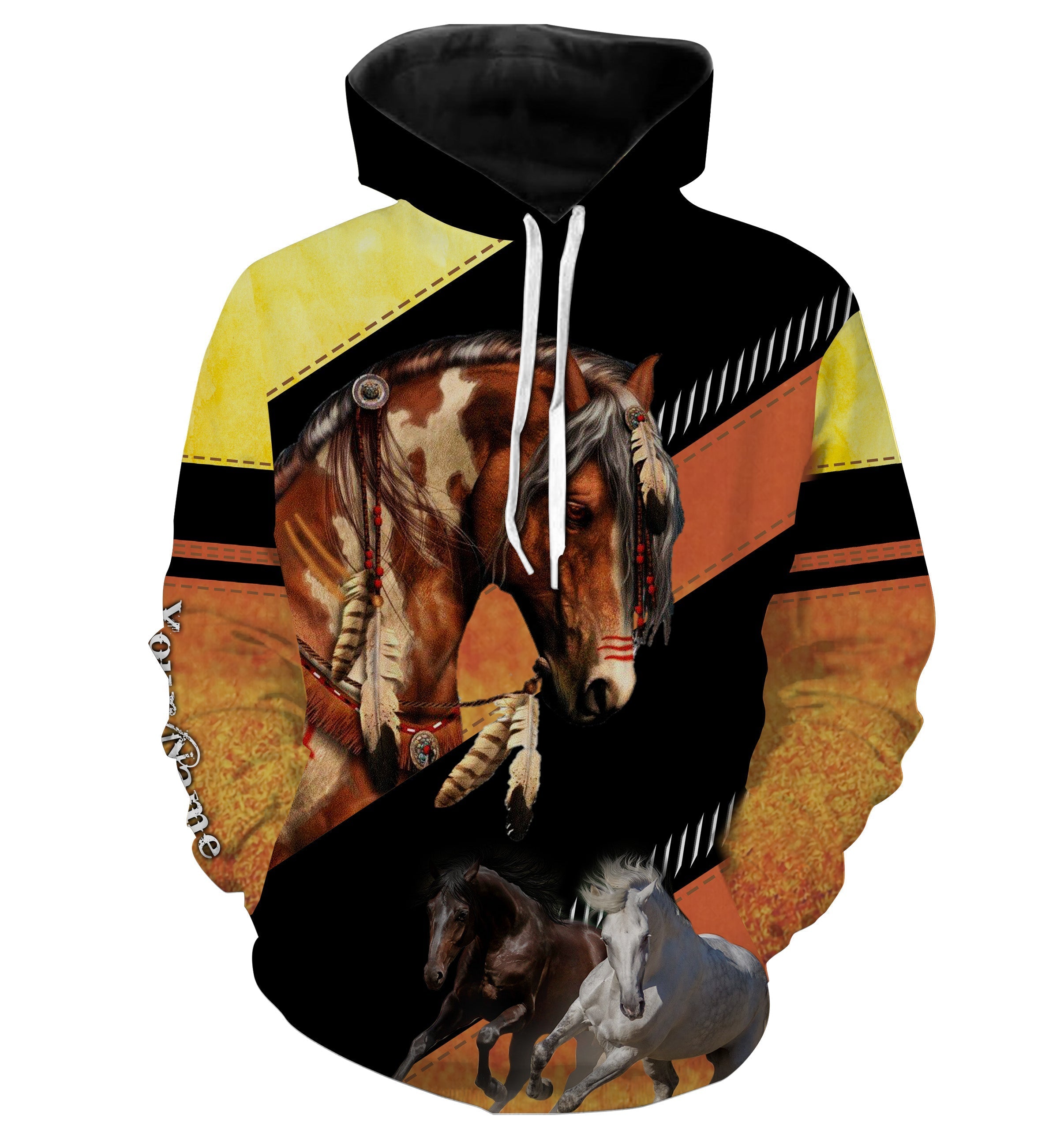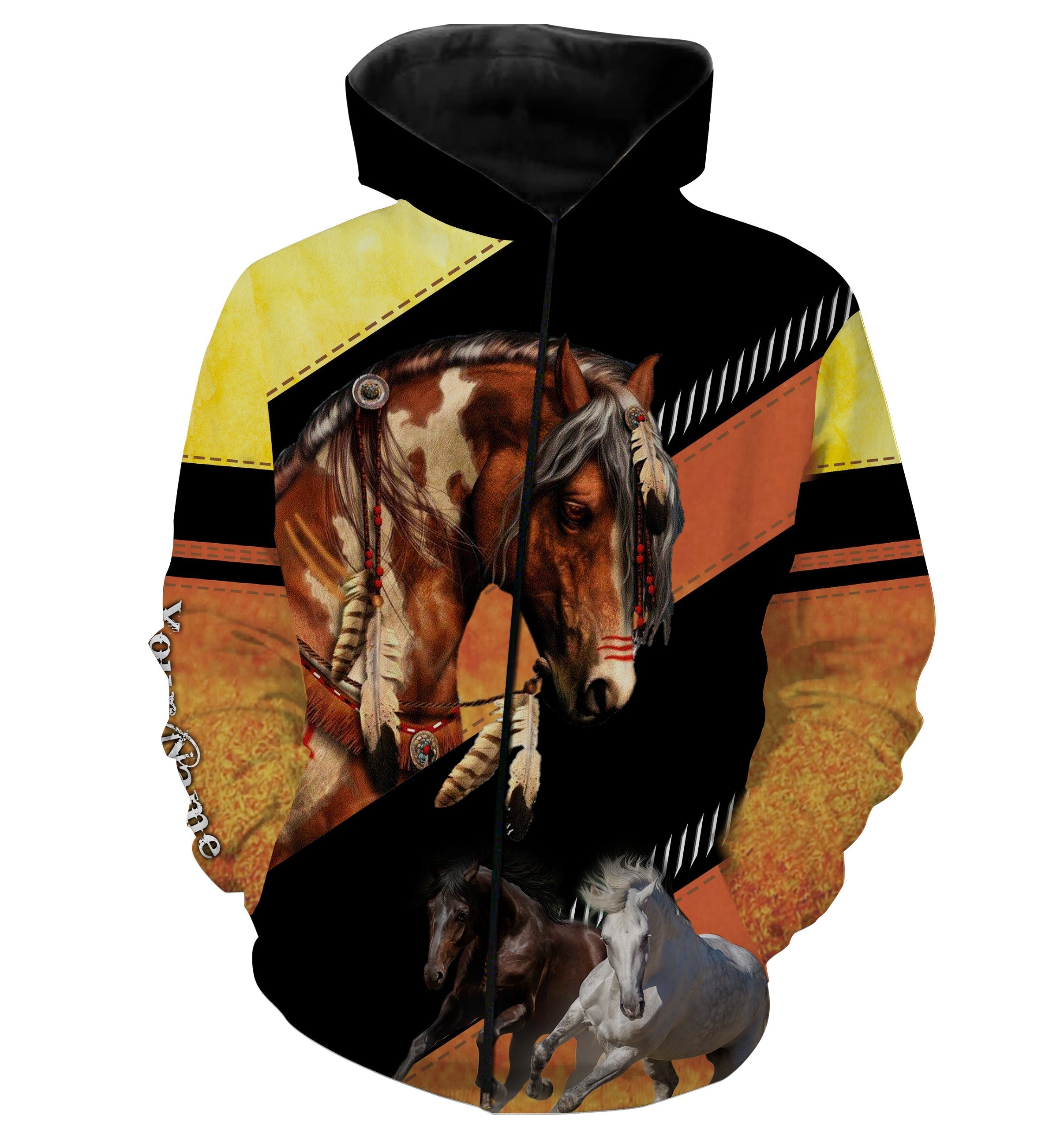 American Paint Horse Native Long Sleeve Horse Riding Tops Custom Name 3D Equestrian Riding Shirts, Fishing Hoodie