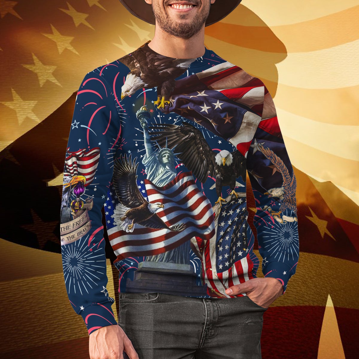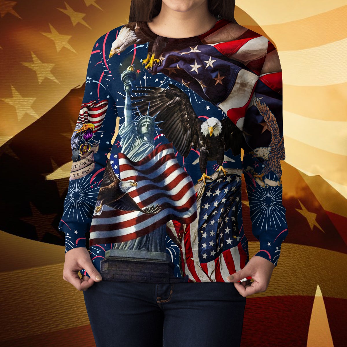 American Pride, Eagle With USA Flag 3D Sweatshirt LT10