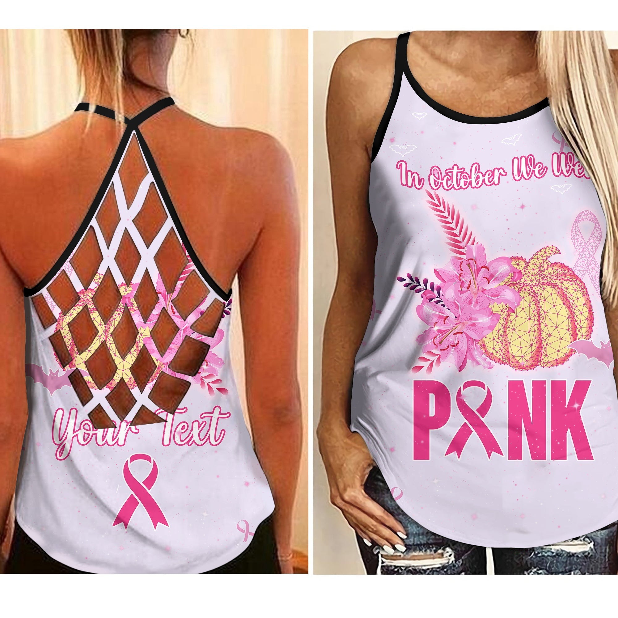 (Custom Personalised) Breast Cancer - Criss Cross Tank Top In October We Wear PINK Pumpkin LT13