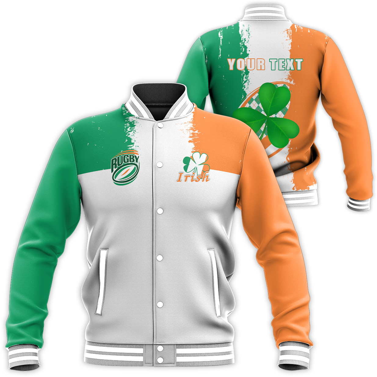 (Custom Personalised) Ireland Rugby Baseball Jacket White LT13
