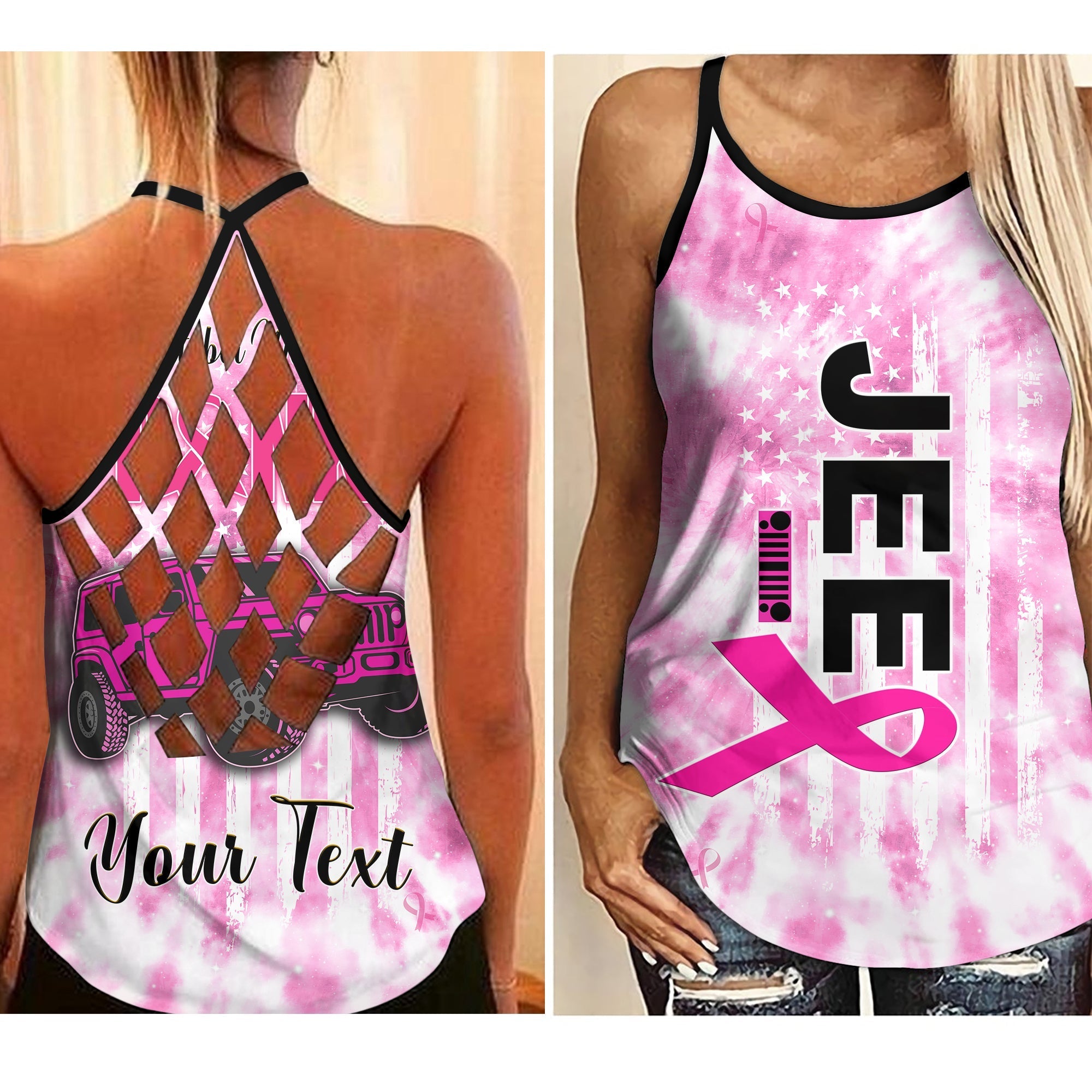 (Custom Personalised) JEEP Breast Cancer - Criss Cross Tank Top Tie Dye In October We Wear Pink LT13