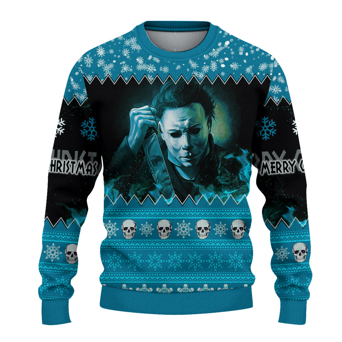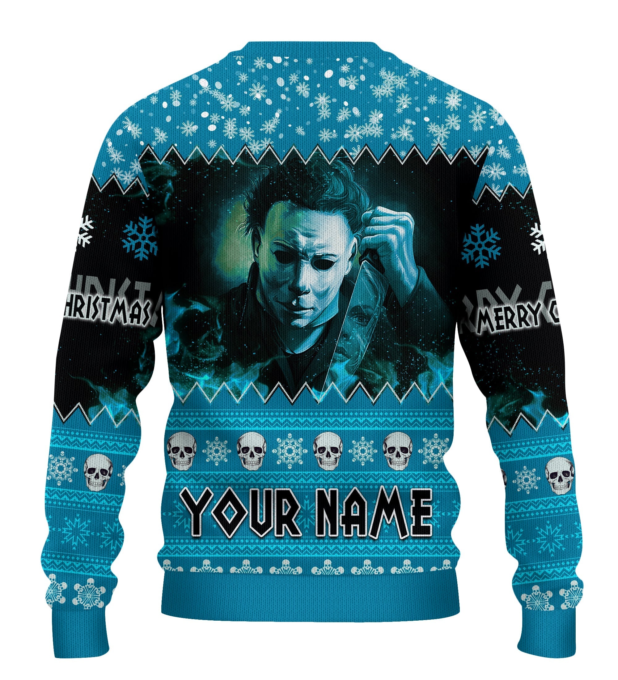 (Custom Personalised) Merry Christmas Gothmas Sweater - Michael Myers Horror Blue LT13