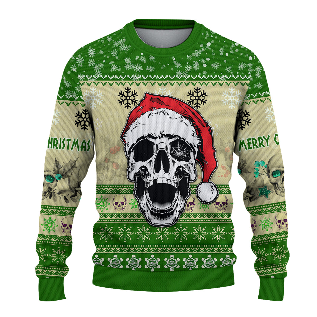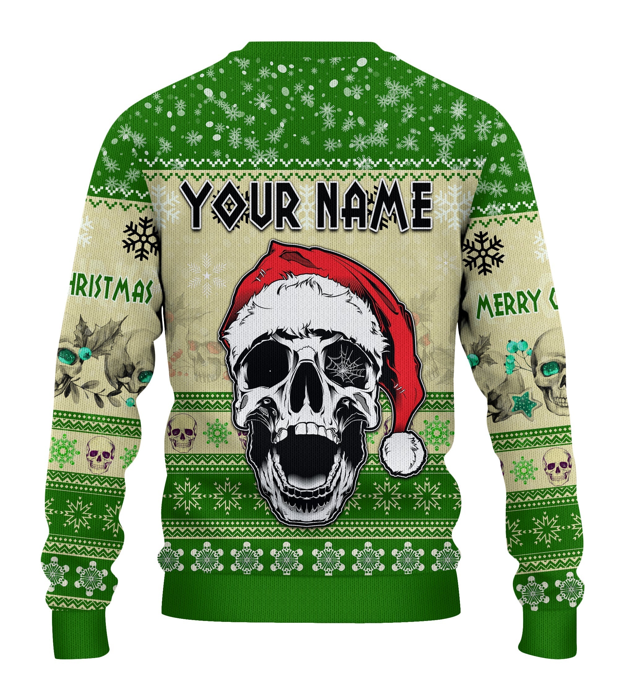 (Custom Personalised) Merry Christmas Gothmas Sweater - Scare Skull Green LT13