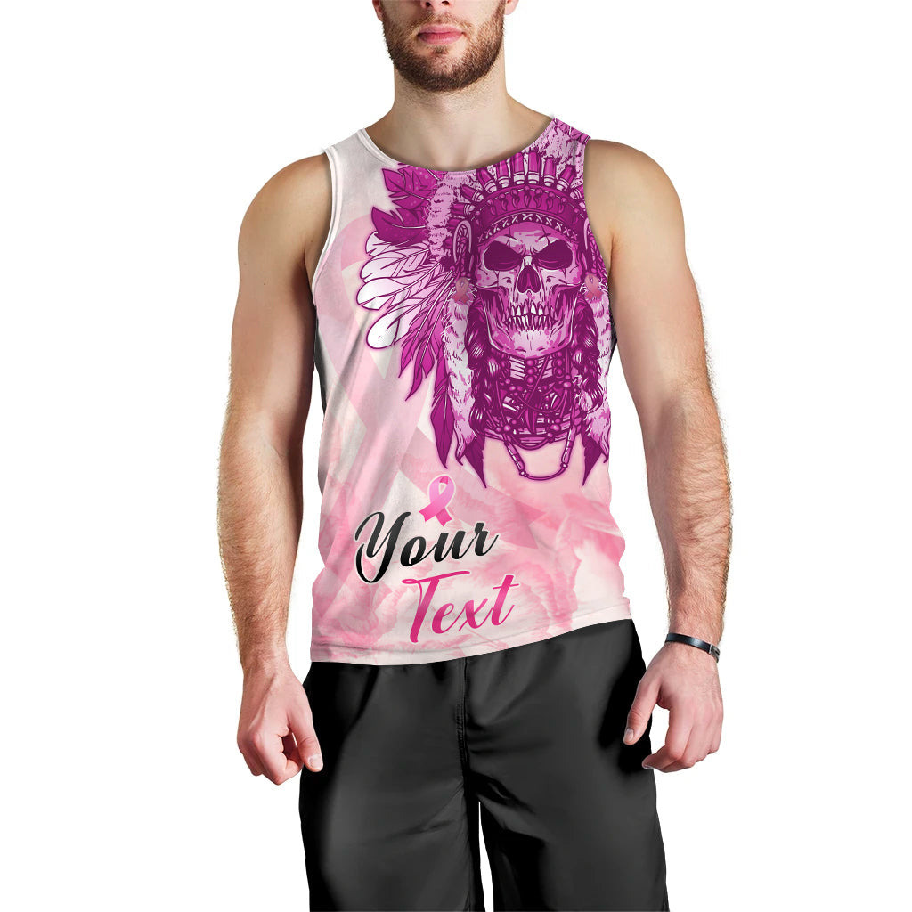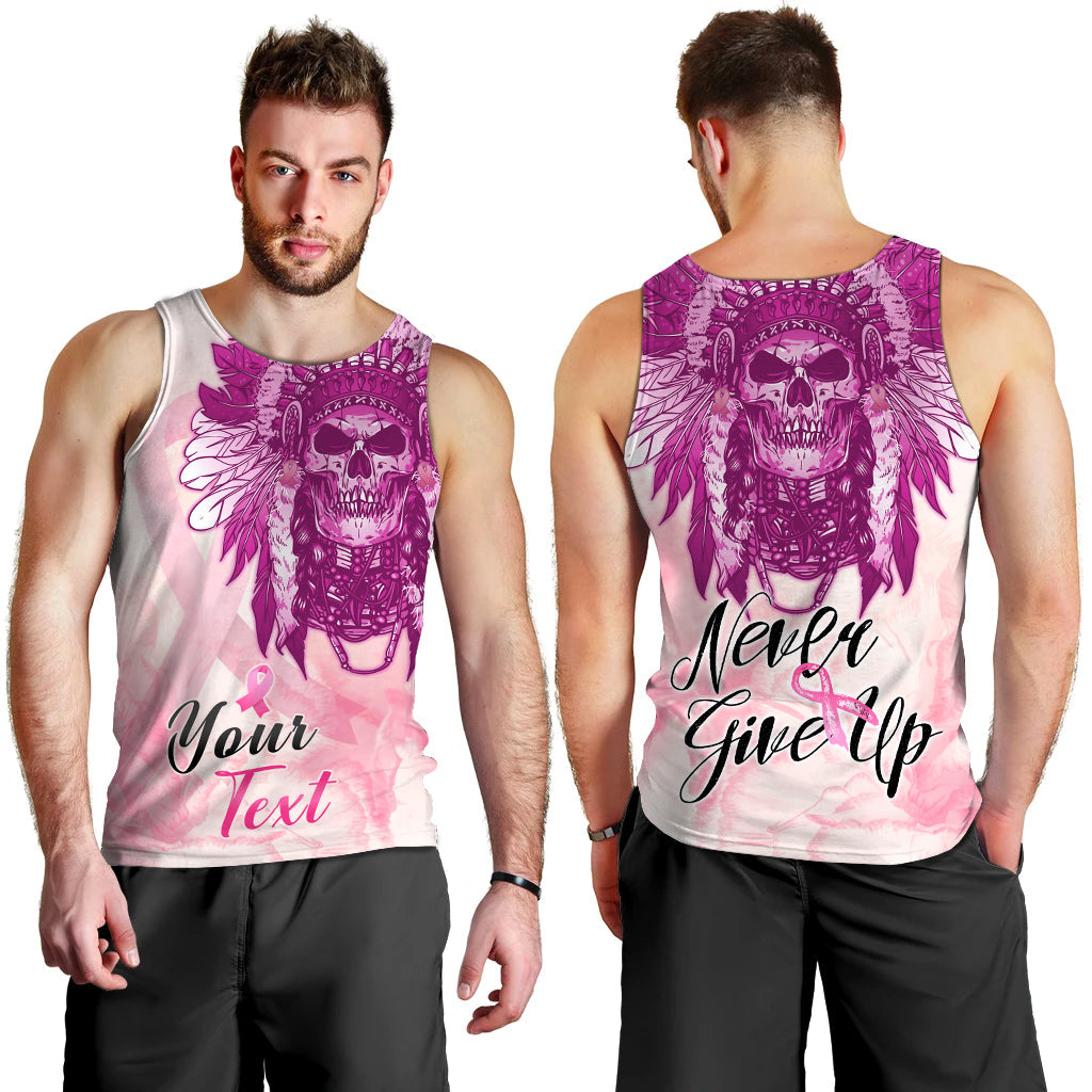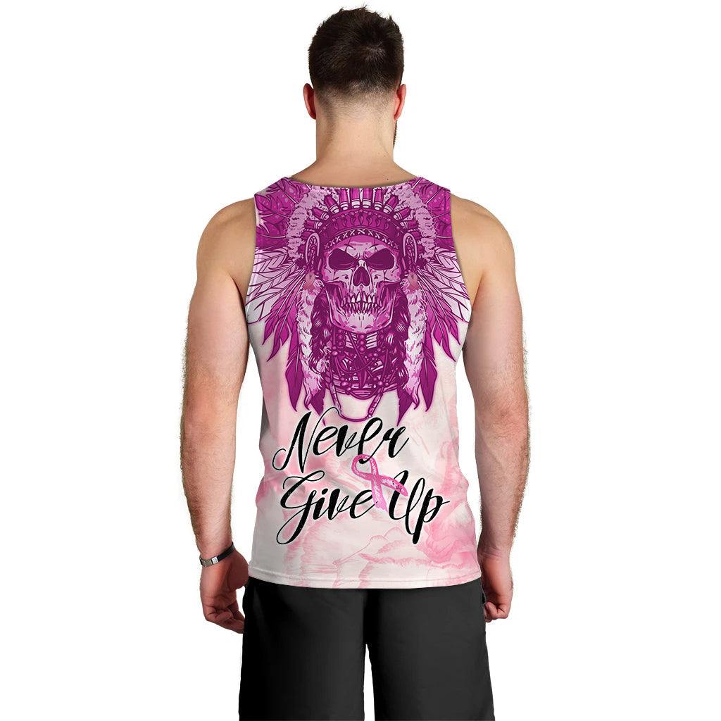 (Custom Personalised) Pink Power Breast Cancer Men Tank Top Never Give Up Native American Skull LT13