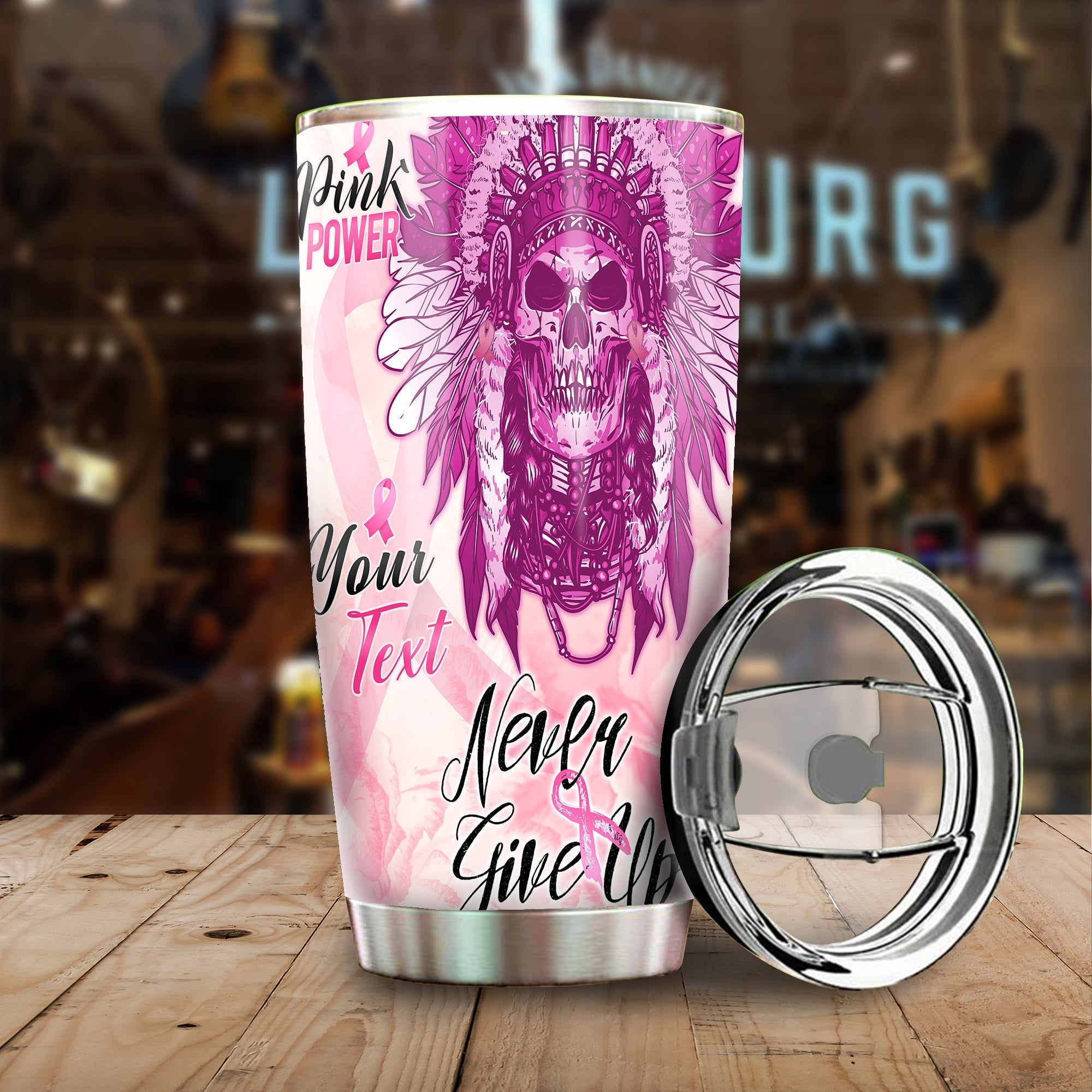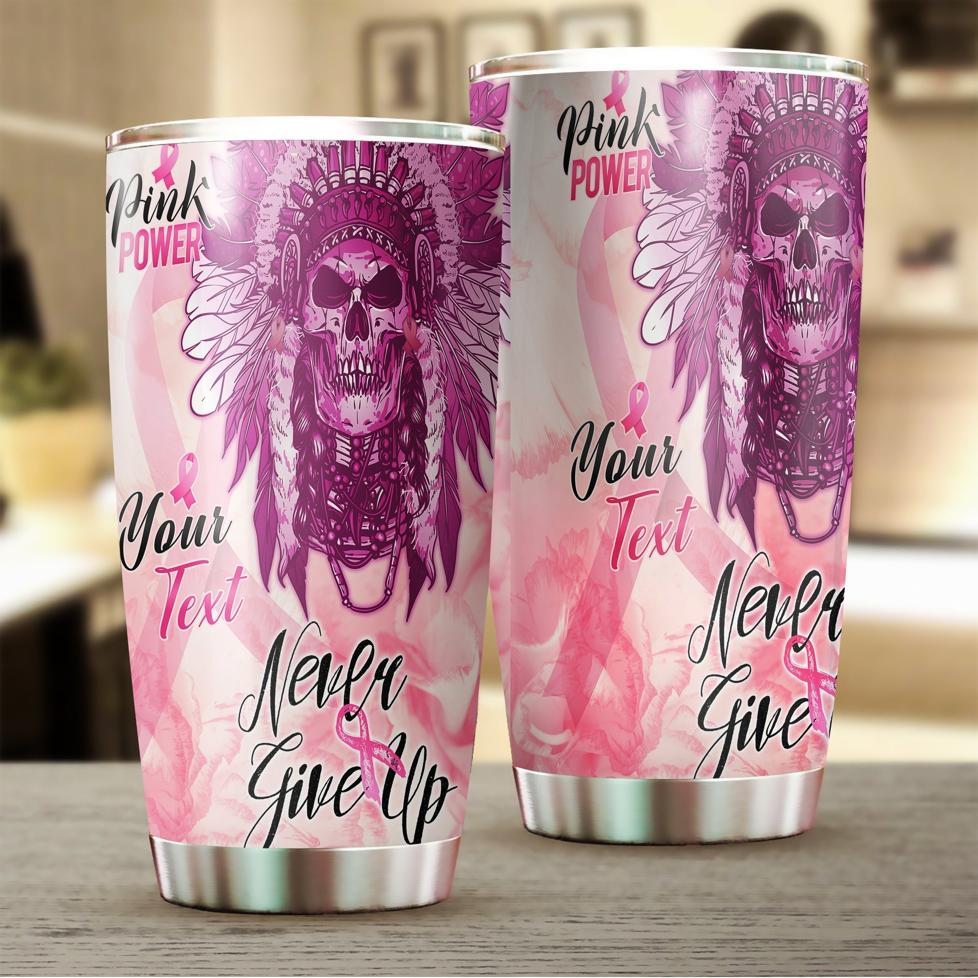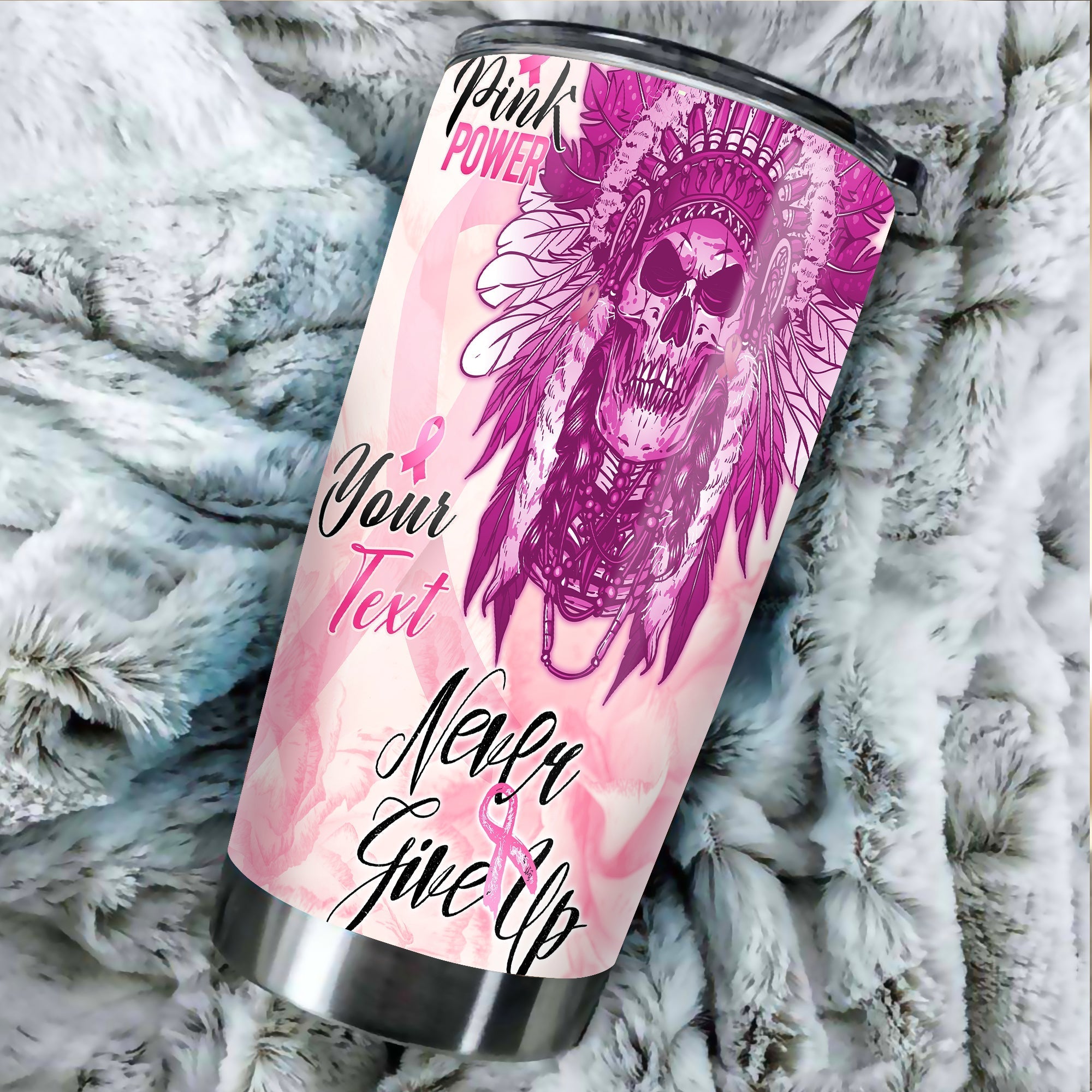 (Custom Personalised) Pink Power Breast Cancer Tumbler Never Give Up Native American Skull LT13