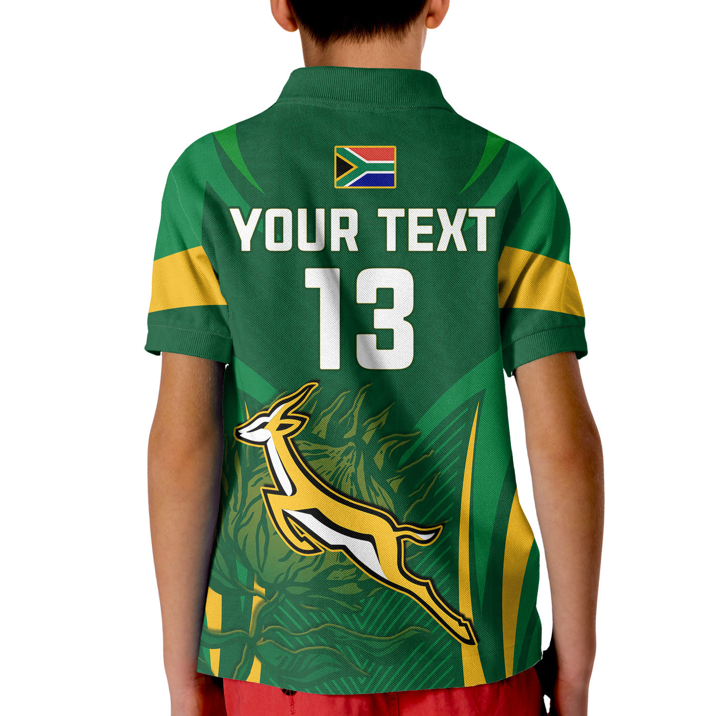 (Custom Text and Number) South Africa Rugby Polo Shirt KID Springboks Champion LT13