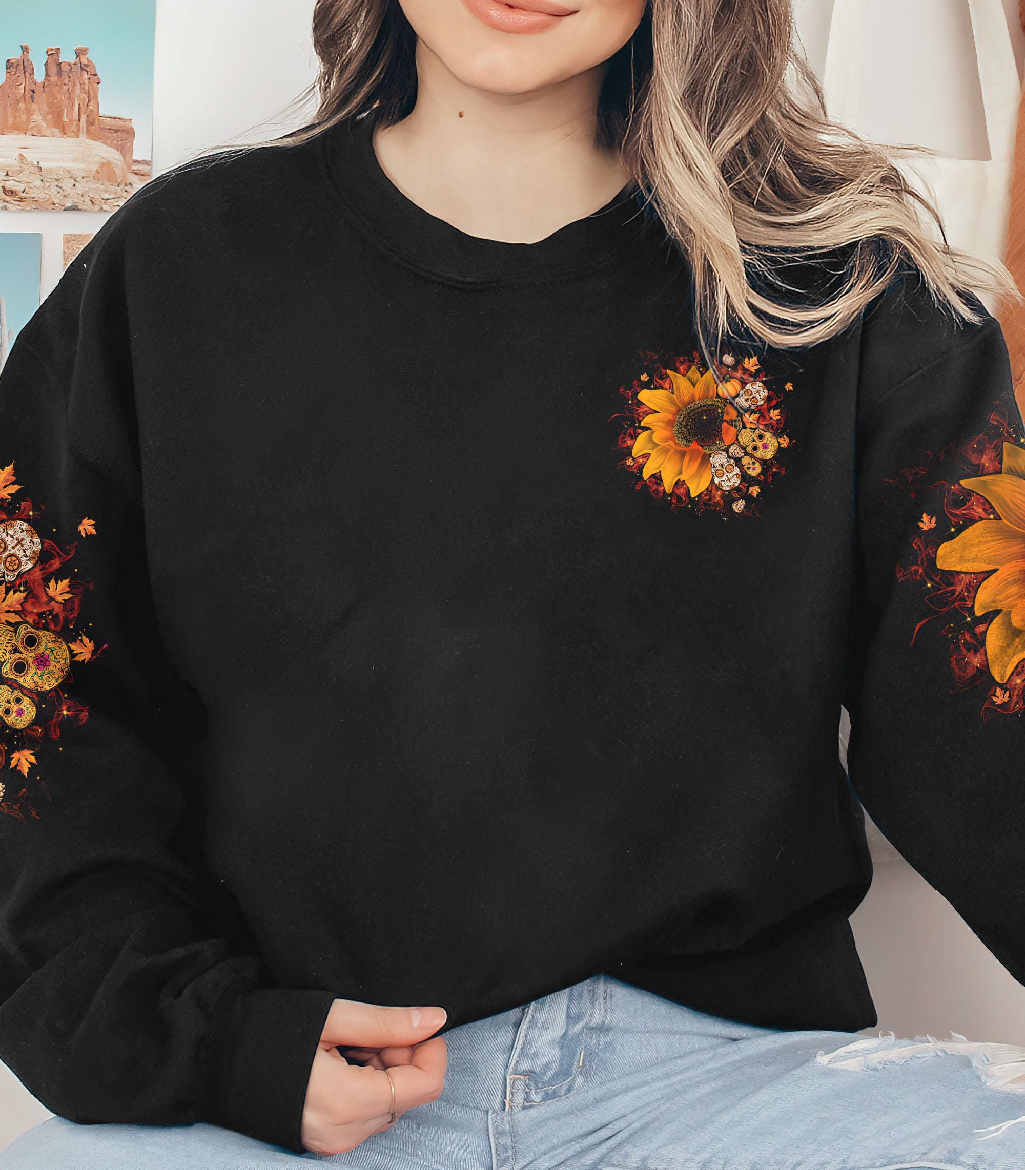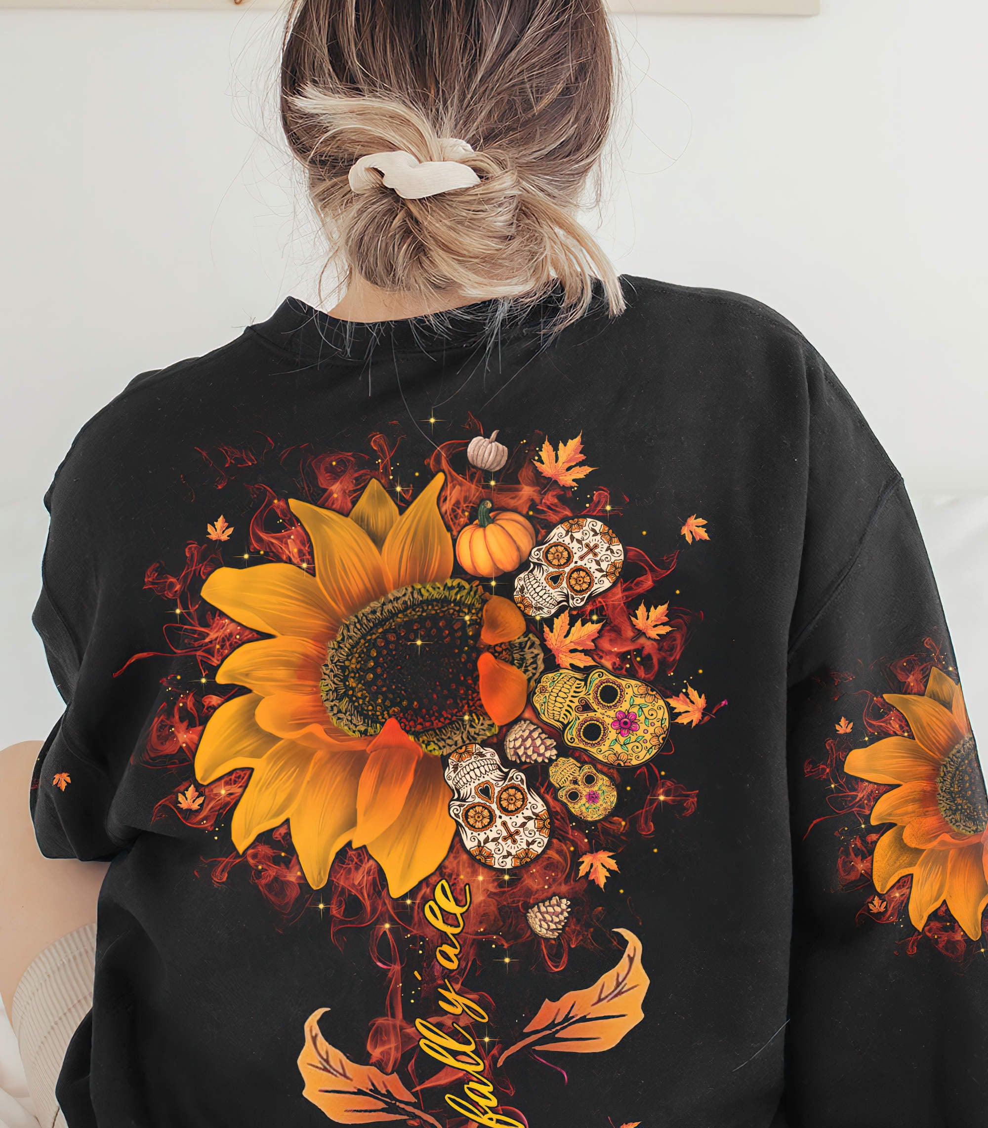 Happy Fall Y'all Sunflower Skull All Over Print Sweatshirt