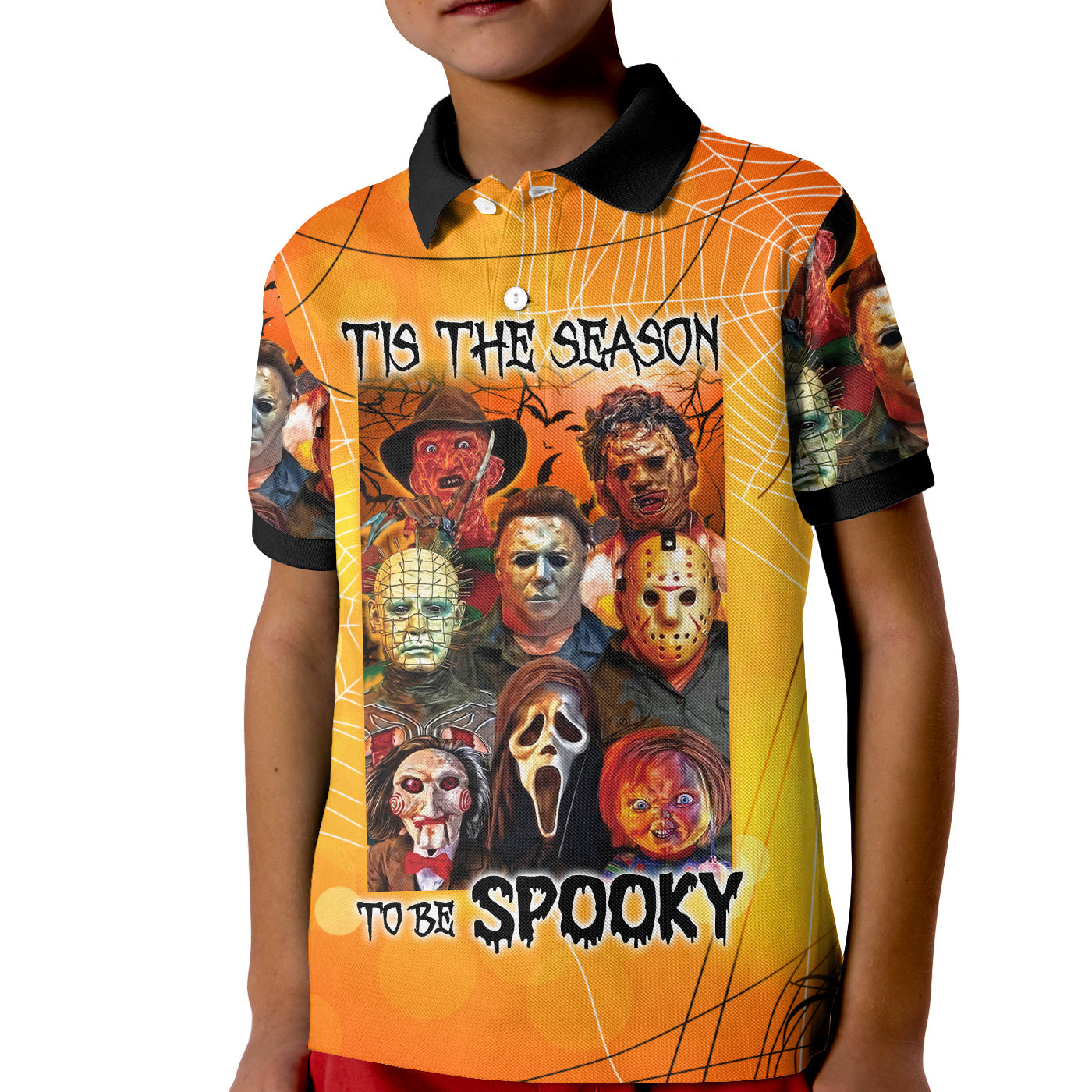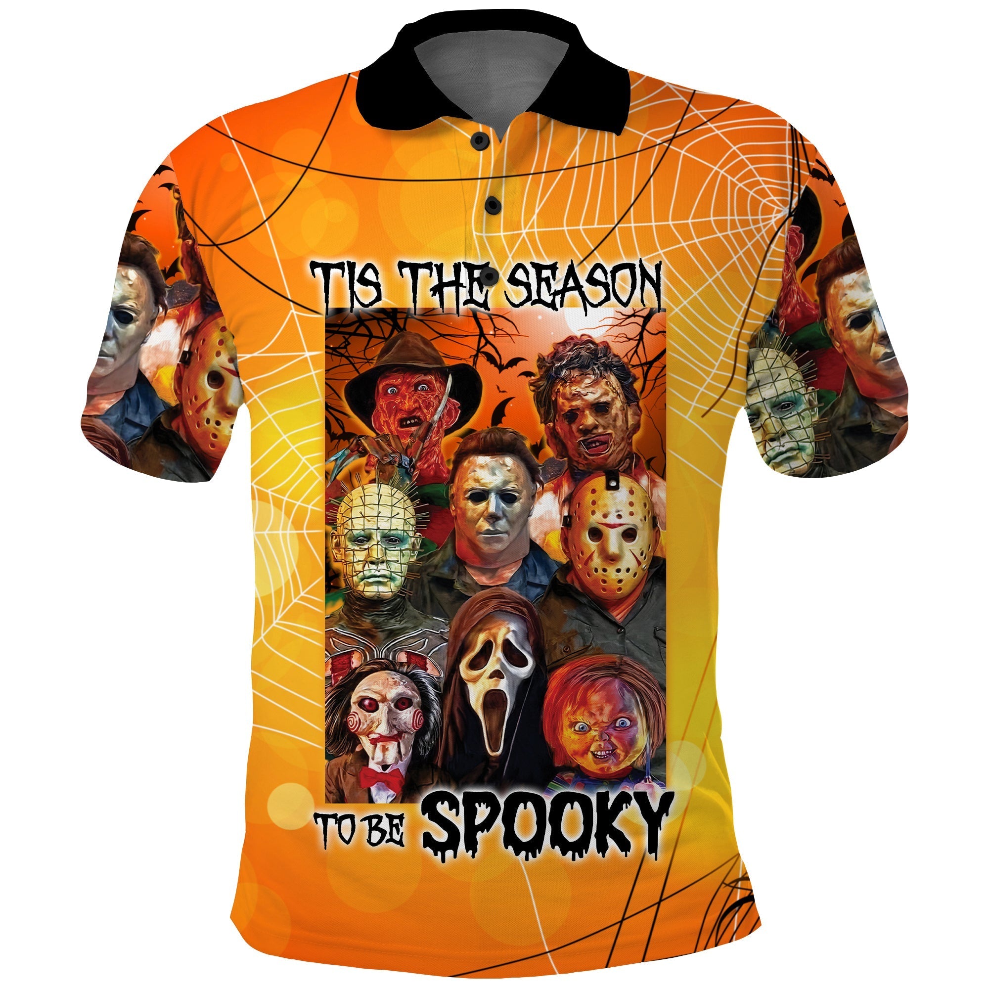Happy Halloween Polo Shirt Scary Characters Tis the Season to be Spooky LT13