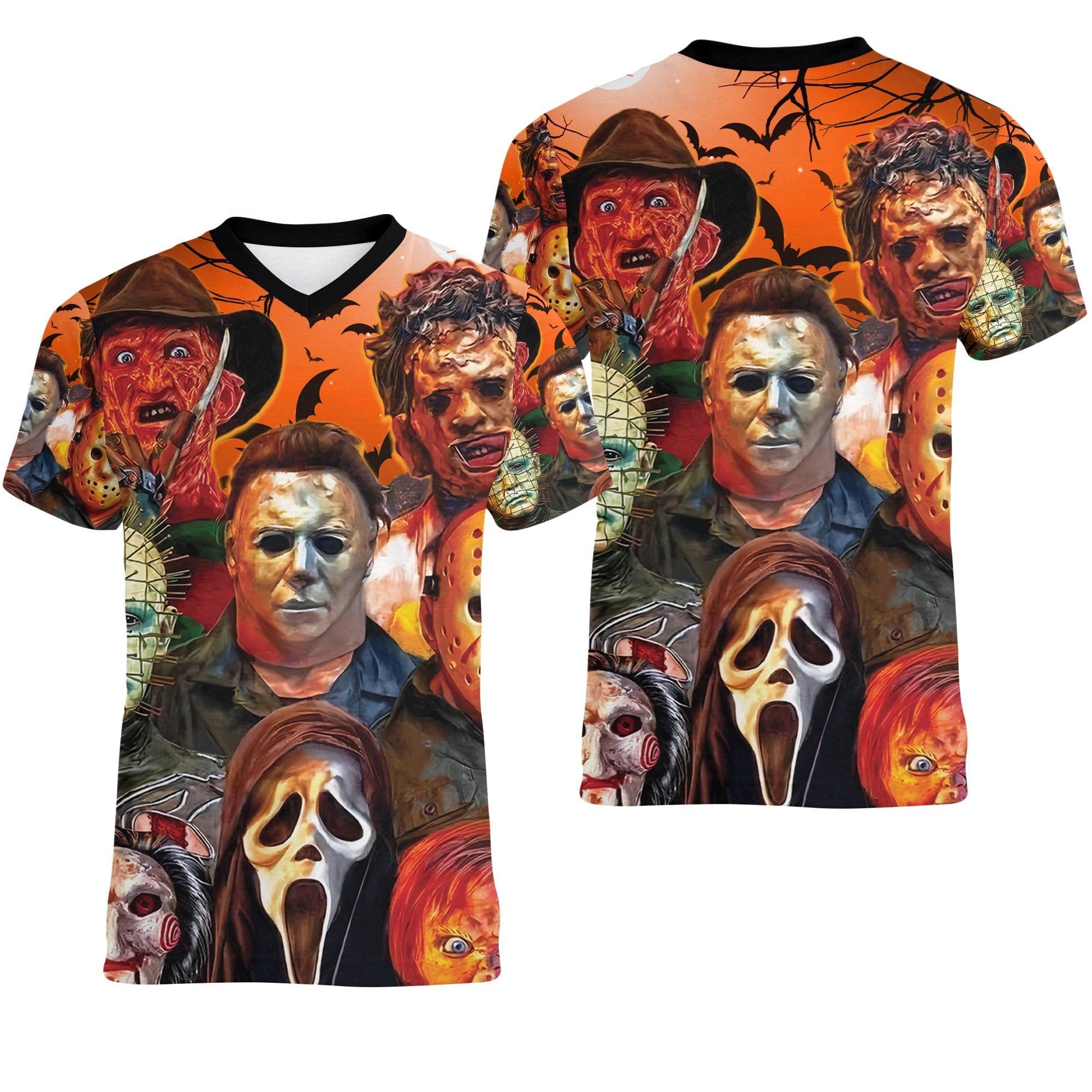 Happy Halloween V-Neck T Shirt Scary Characters In the Dark Forest LT13
