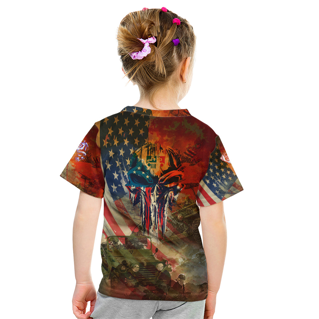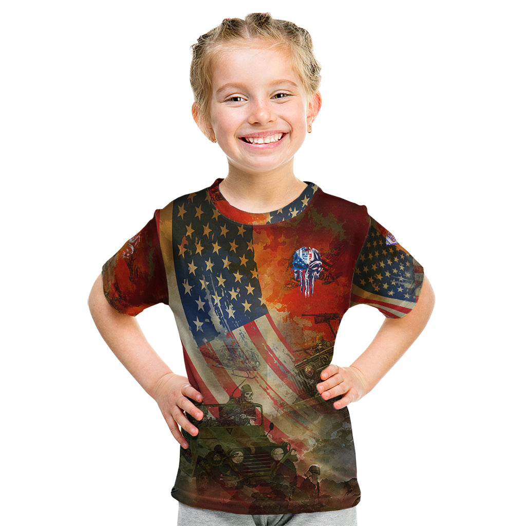 Jeep Skull Solider Kid T Shirt American Flag DT02