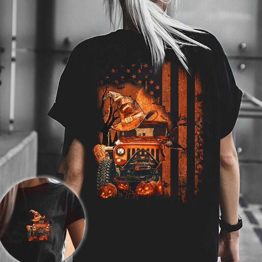 Jeep T-Shirt - Jeep Witch Halloween American Flag T-Shirt