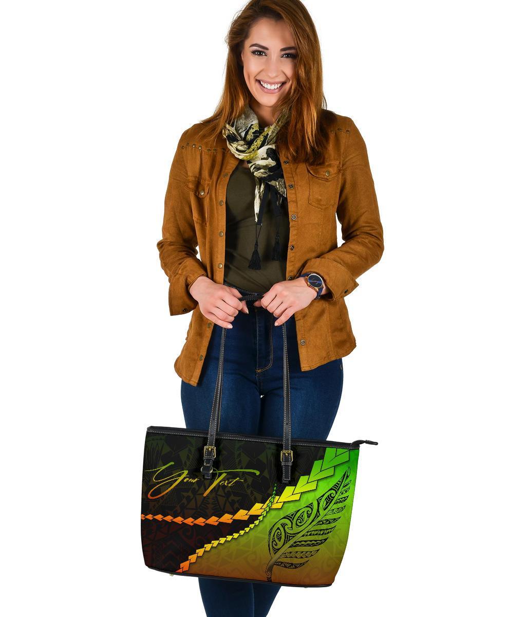 (Signature Custom) Maori Silver Fern Leather Tote Bag, Reggae