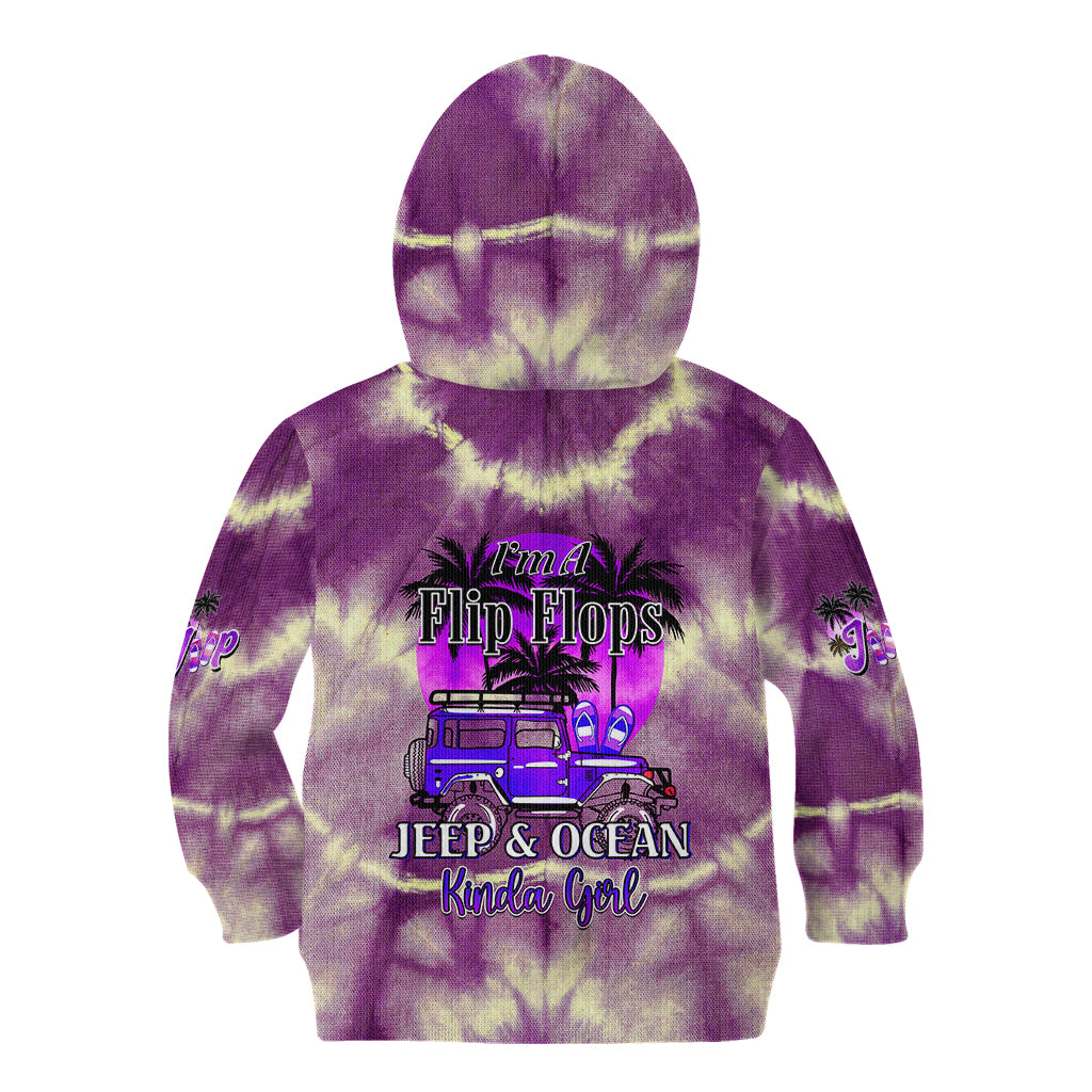 Violet Jeep Tie Dye Kid Hoodie Im A Flip Flops Jeep And Ocean Kinda Girl Ver.02 TS06
